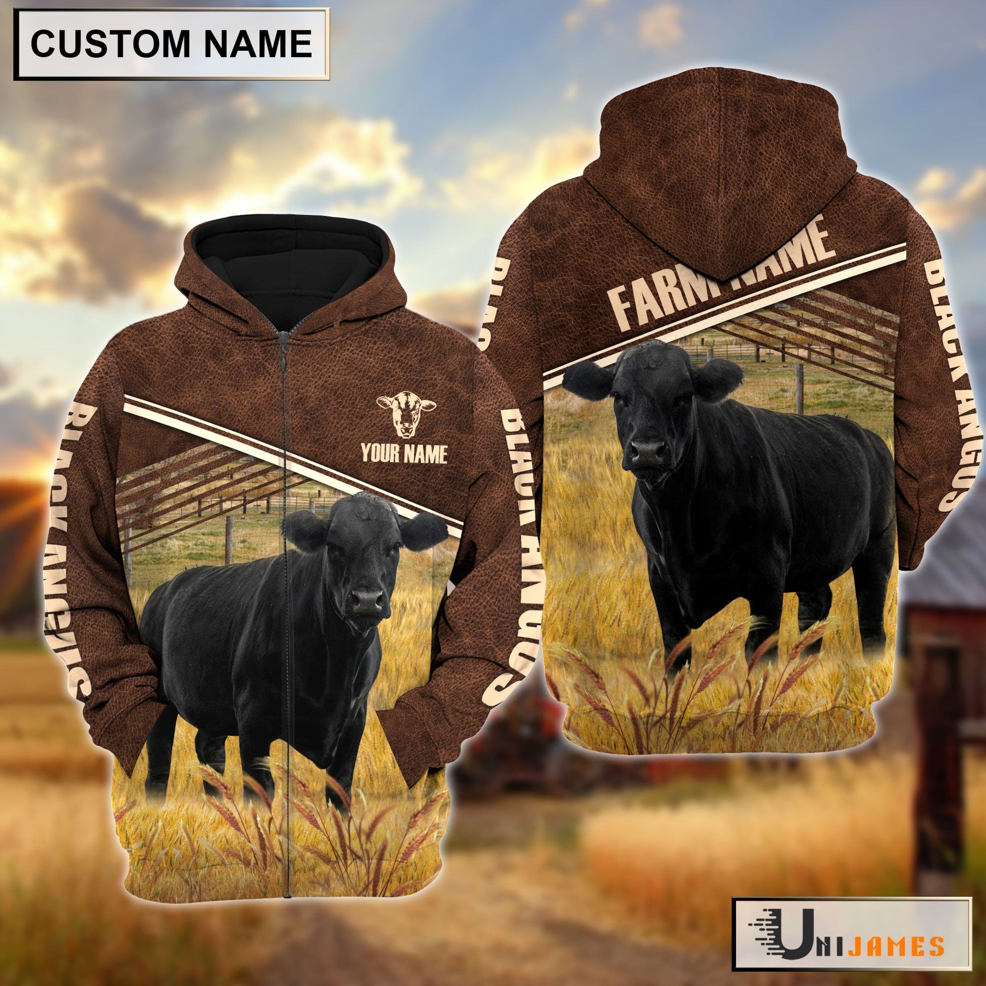 Uni Black Angus On Farm Leather Pattern Personalized Hoodie