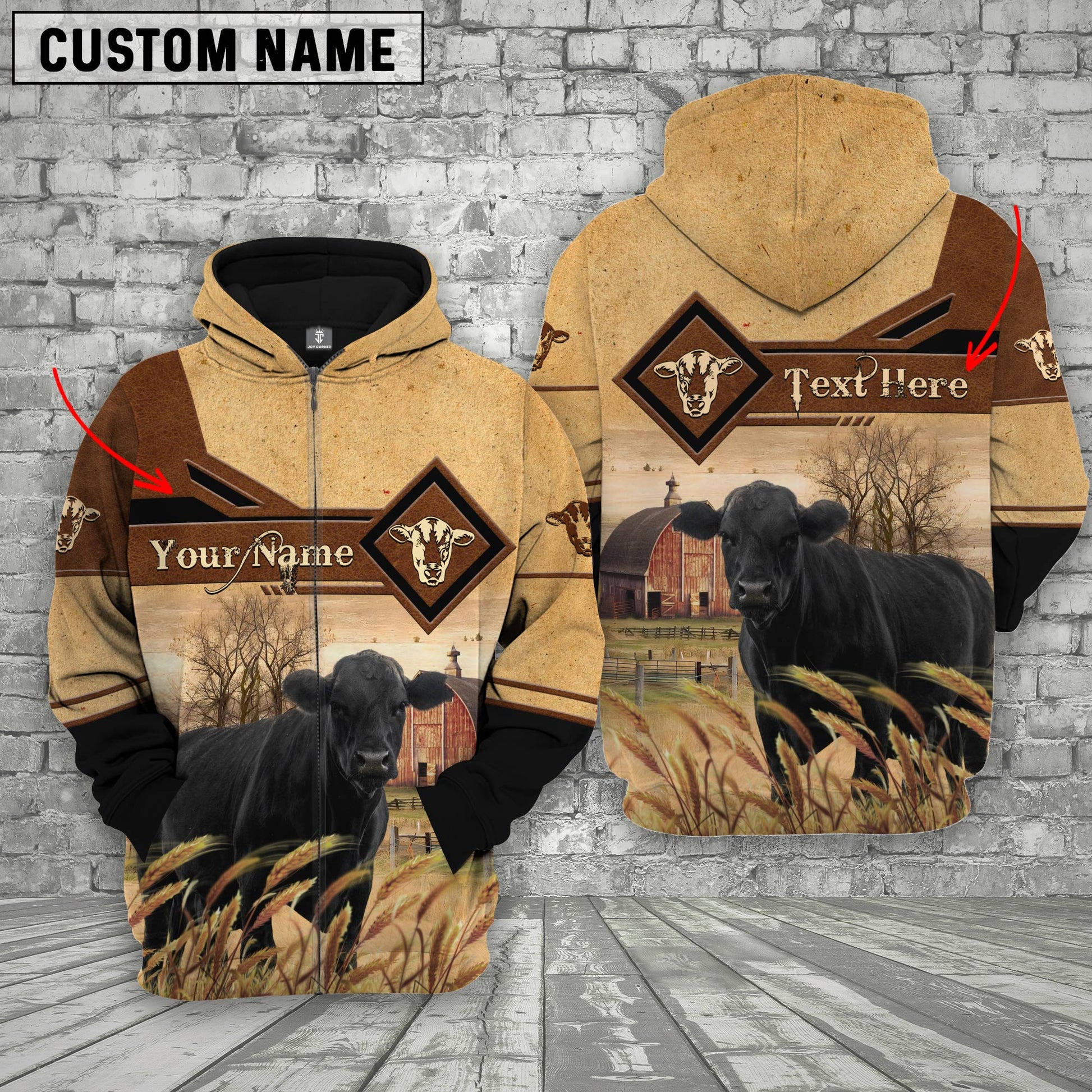Uni Black Angus On Farms Custom Name Printed 3D Hoodie