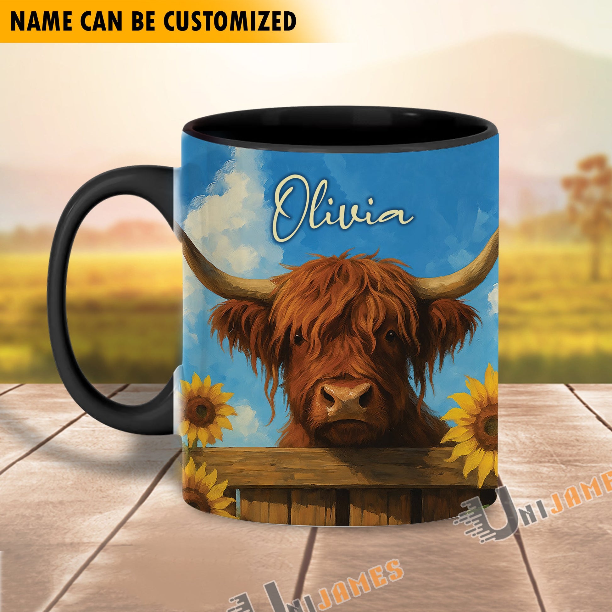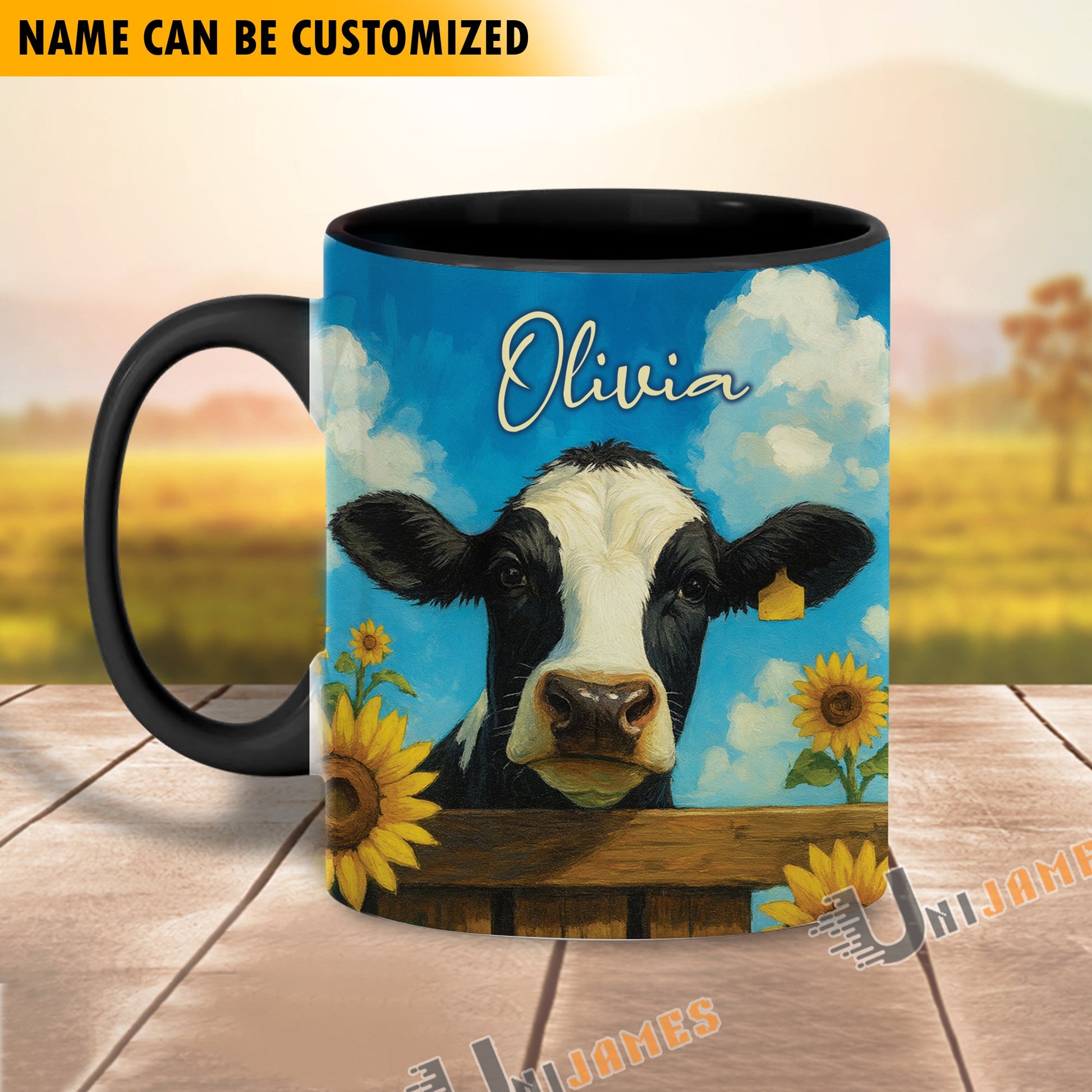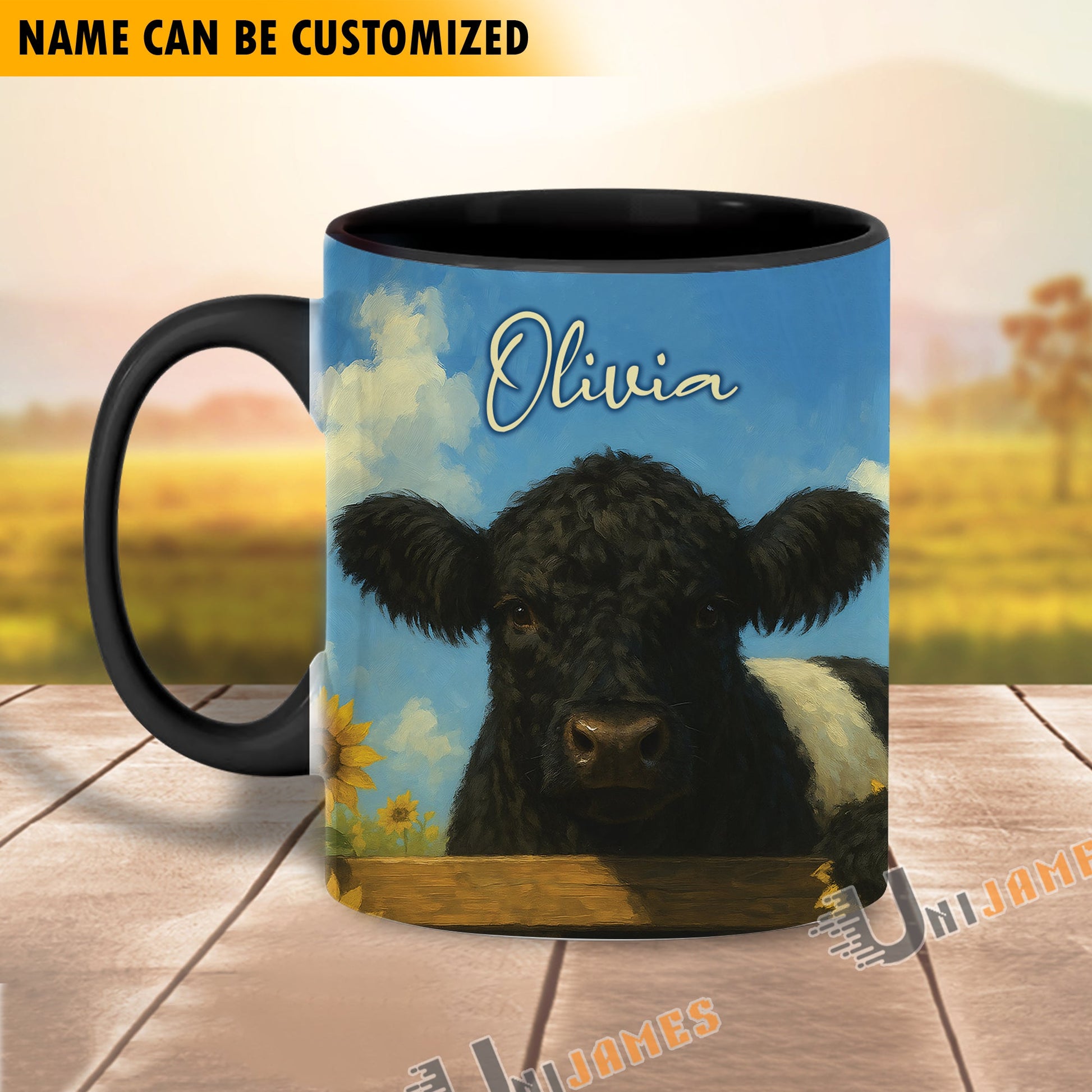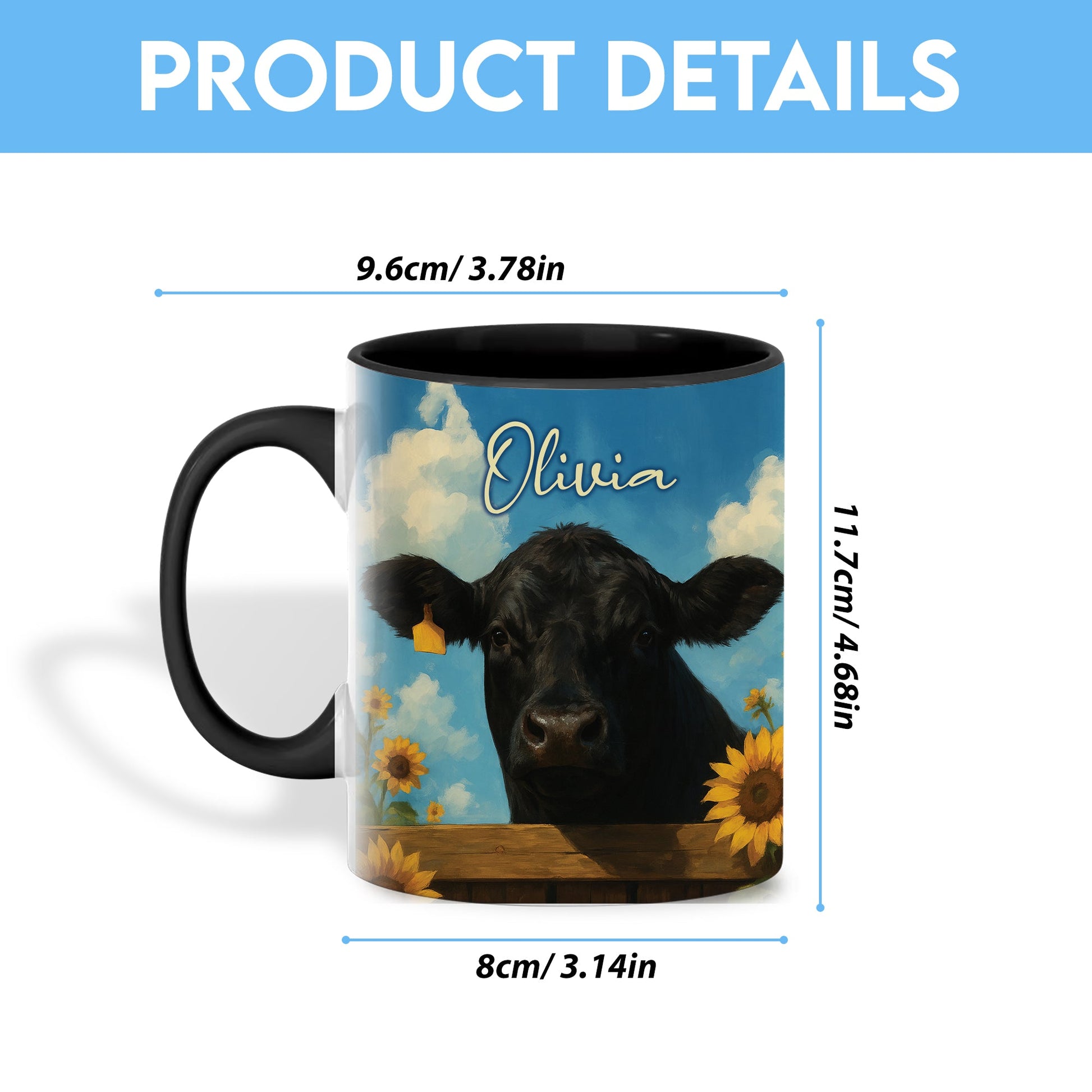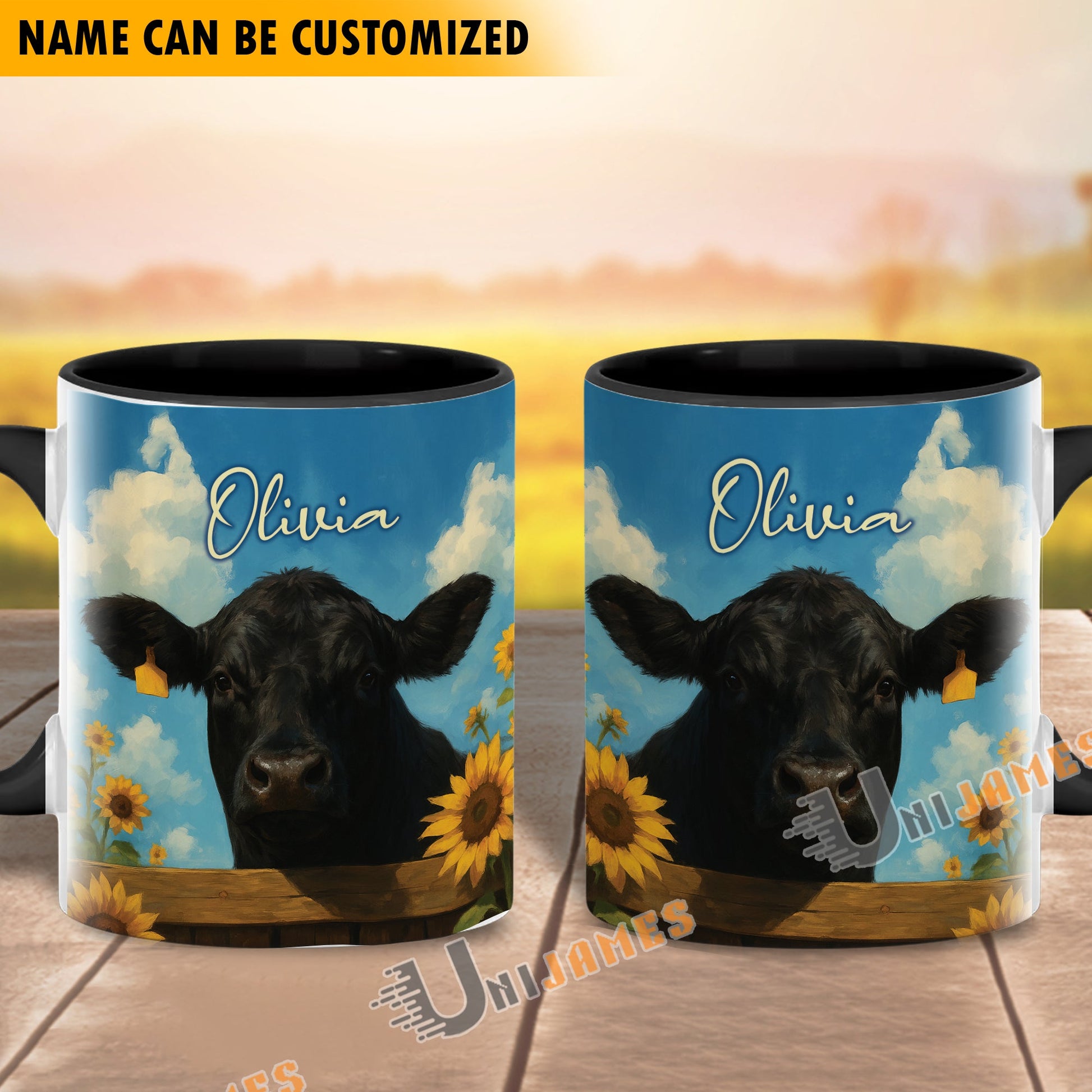 Uni Black Angus Peace Farm Personalized Name Two Tone Mug (10 Cattle Breeds)