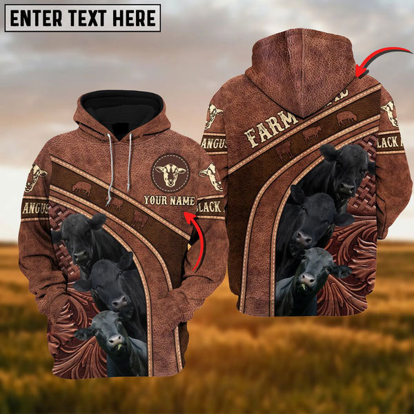 Uni Black Angus Personalized Name Brown Carving Leather Pattern 3D Hoodie
