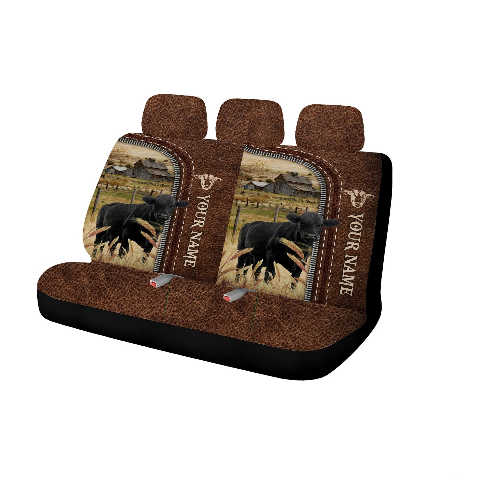 Uni Black Angus Personalized Name Leather Pattern Car Seat Covers Universal Fit (2Pcs)