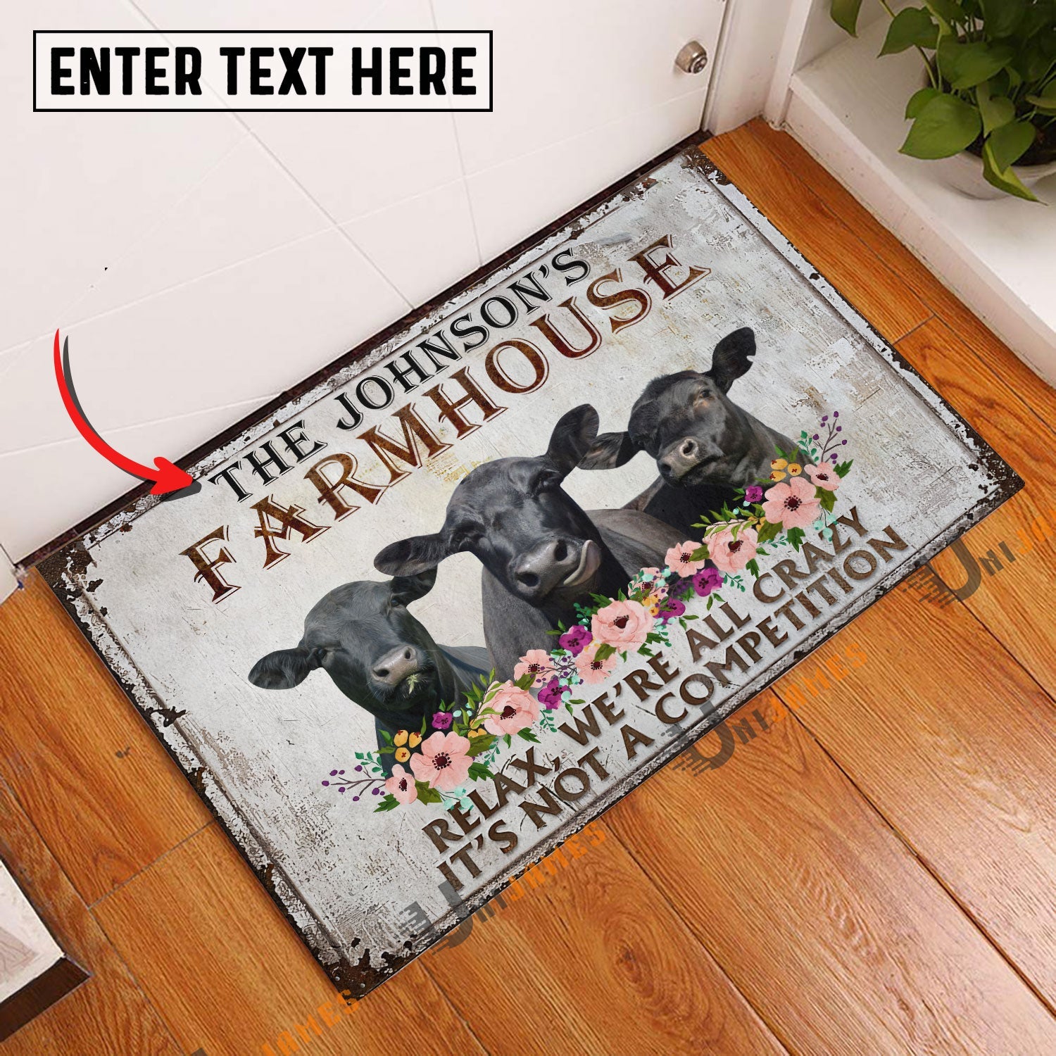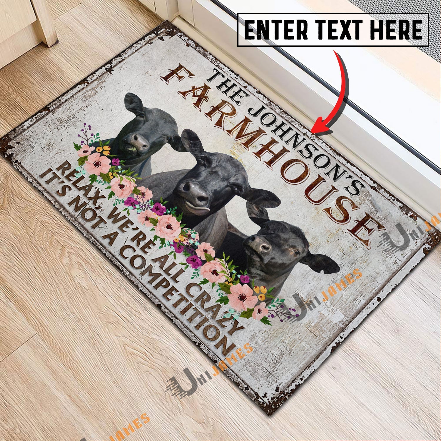 Uni Black Angus Relax Cattle Farm Personalized Name Doormat