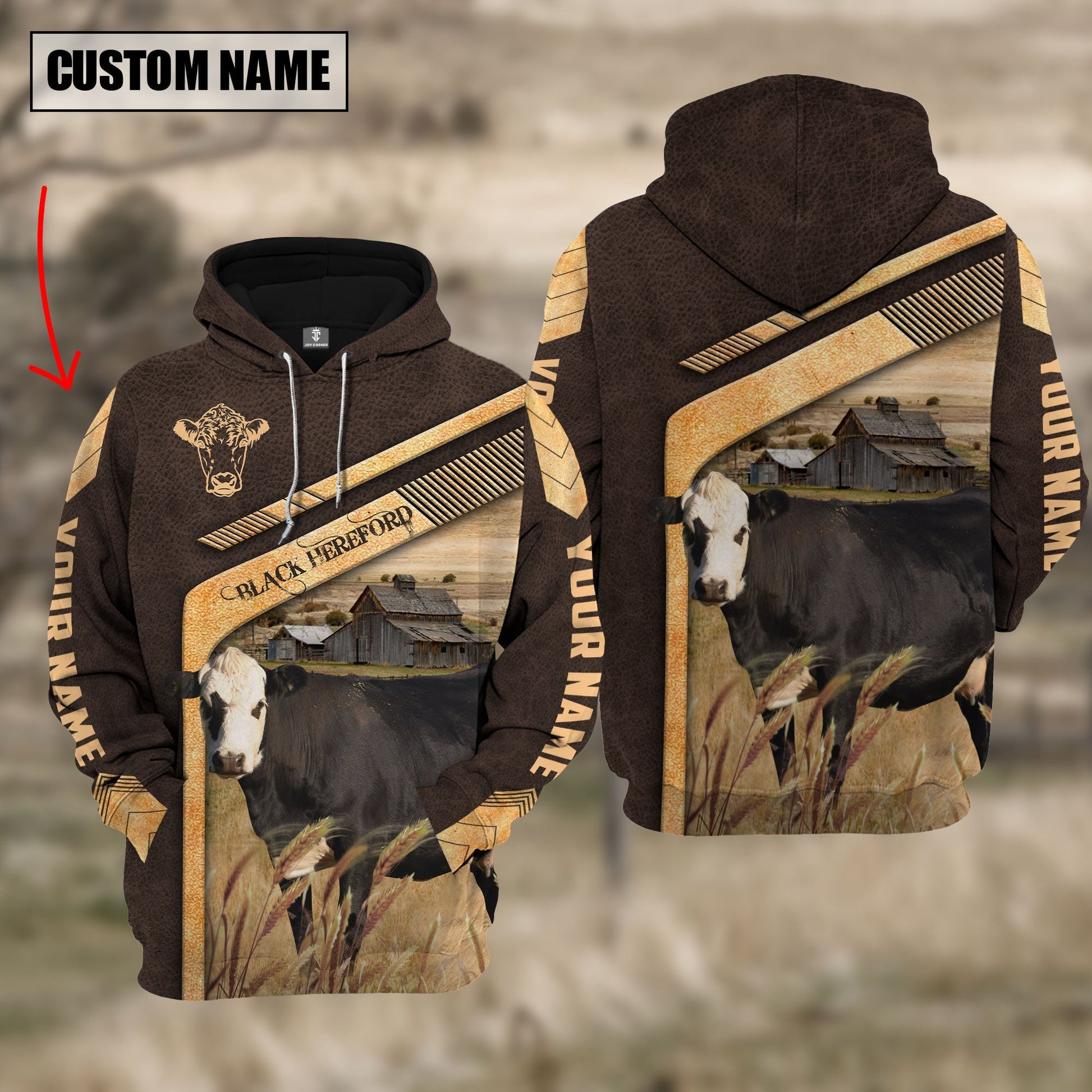 Uni Black Hereford On The Meadow Custom Name Hoodie