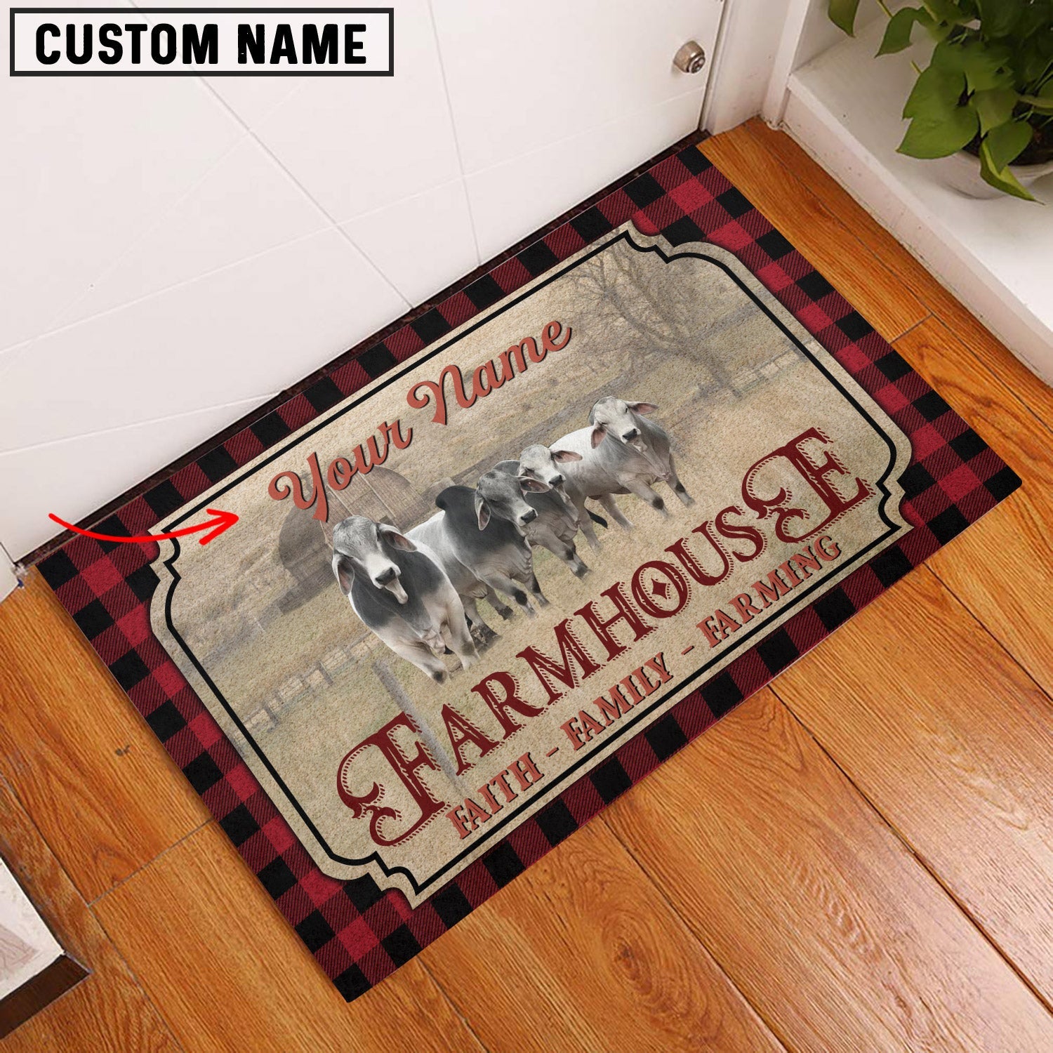 Uni Brahman Faith Family Farming Custom Name Doormat