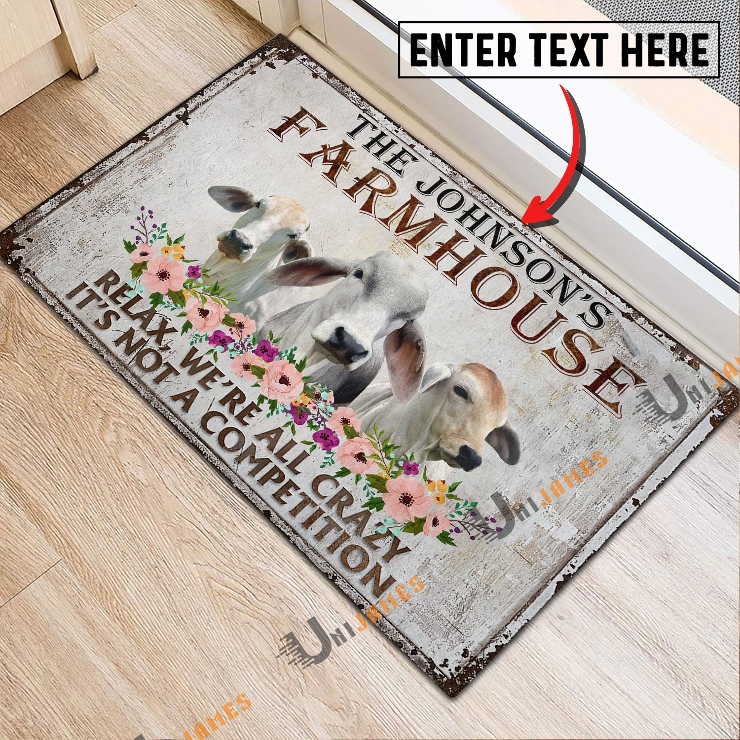 Uni Brahman Relax Cattle Farm Personalized Name Doormat