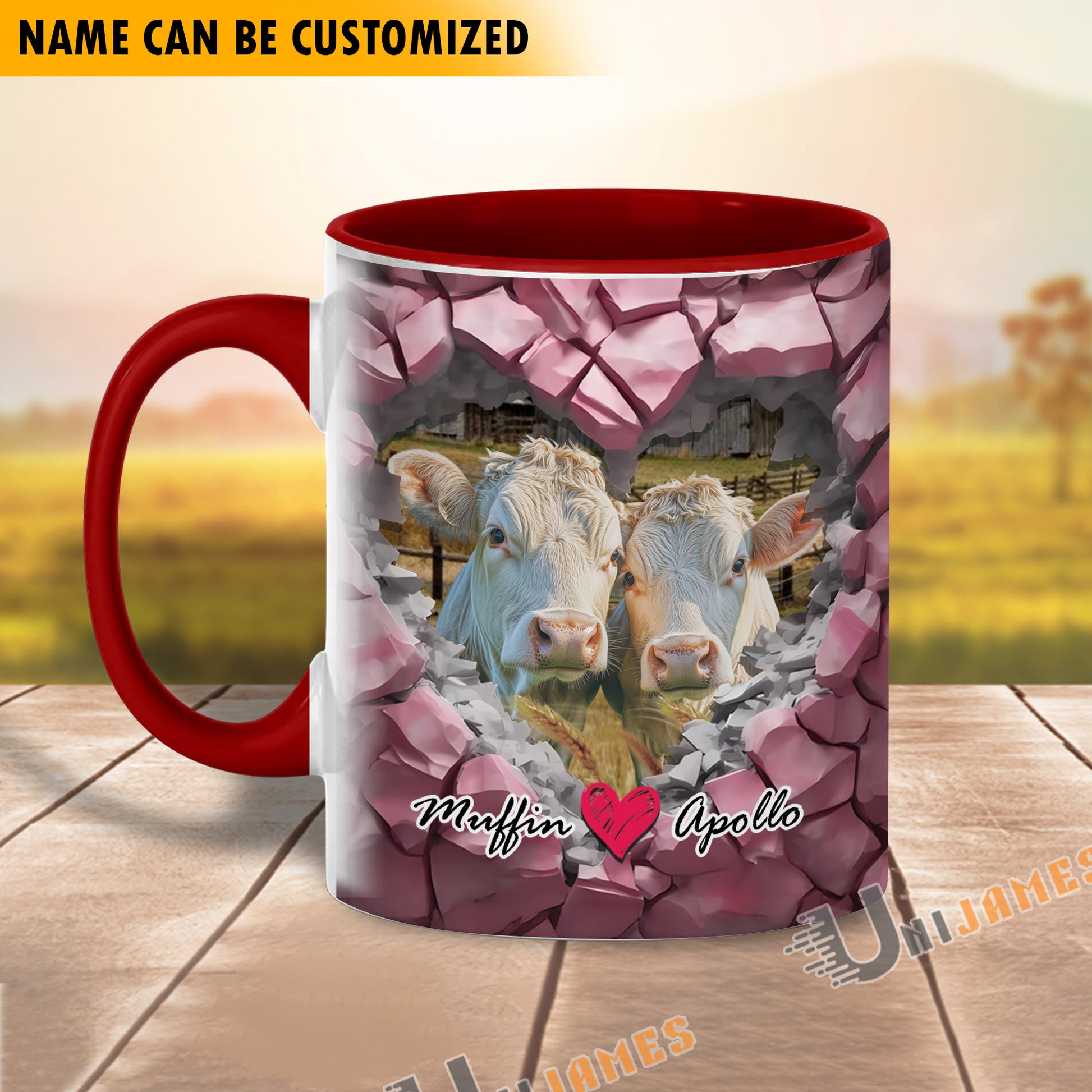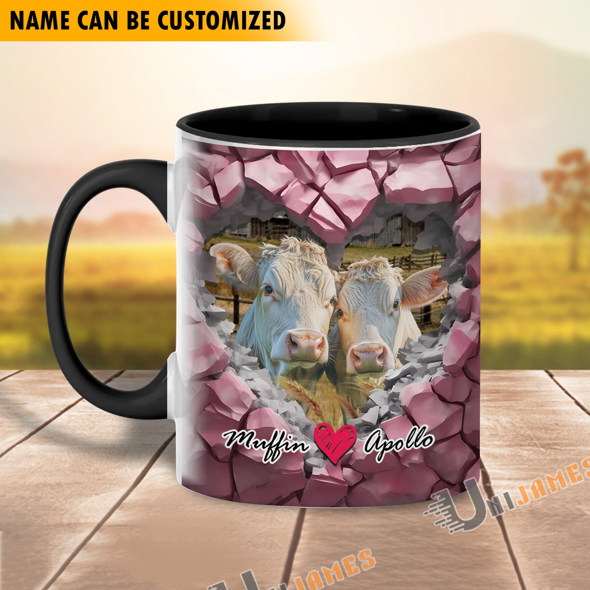 Uni Charolais Couple Personalized Name Two Tone Mug