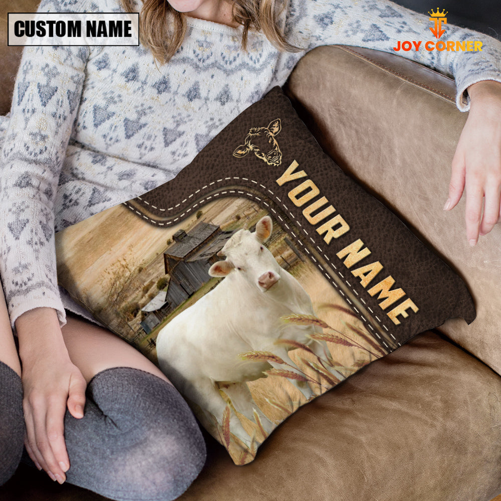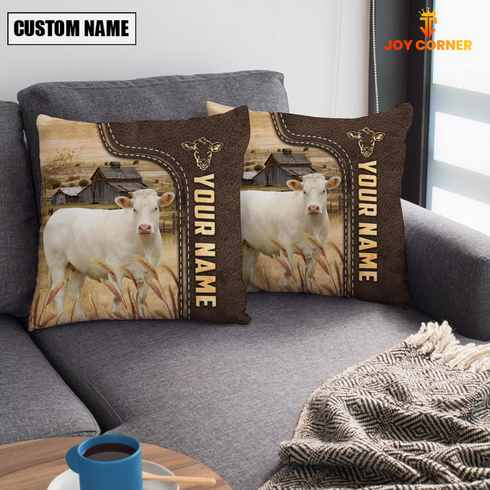 Uni Charolais Custom Name Leather Pattern Pillow Case