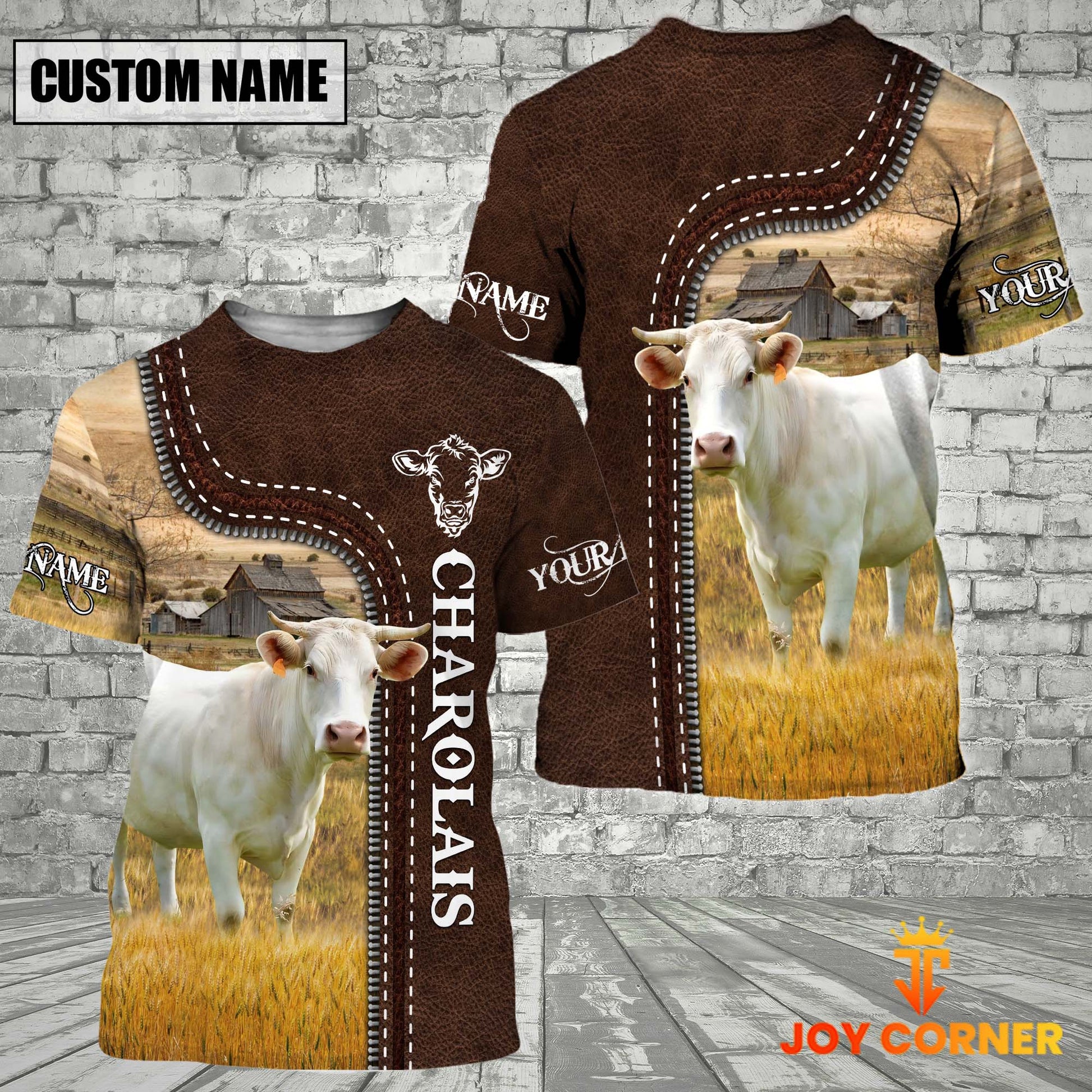 Uni Charolais Farm Custom Name Leather Pattern T-Shirt
