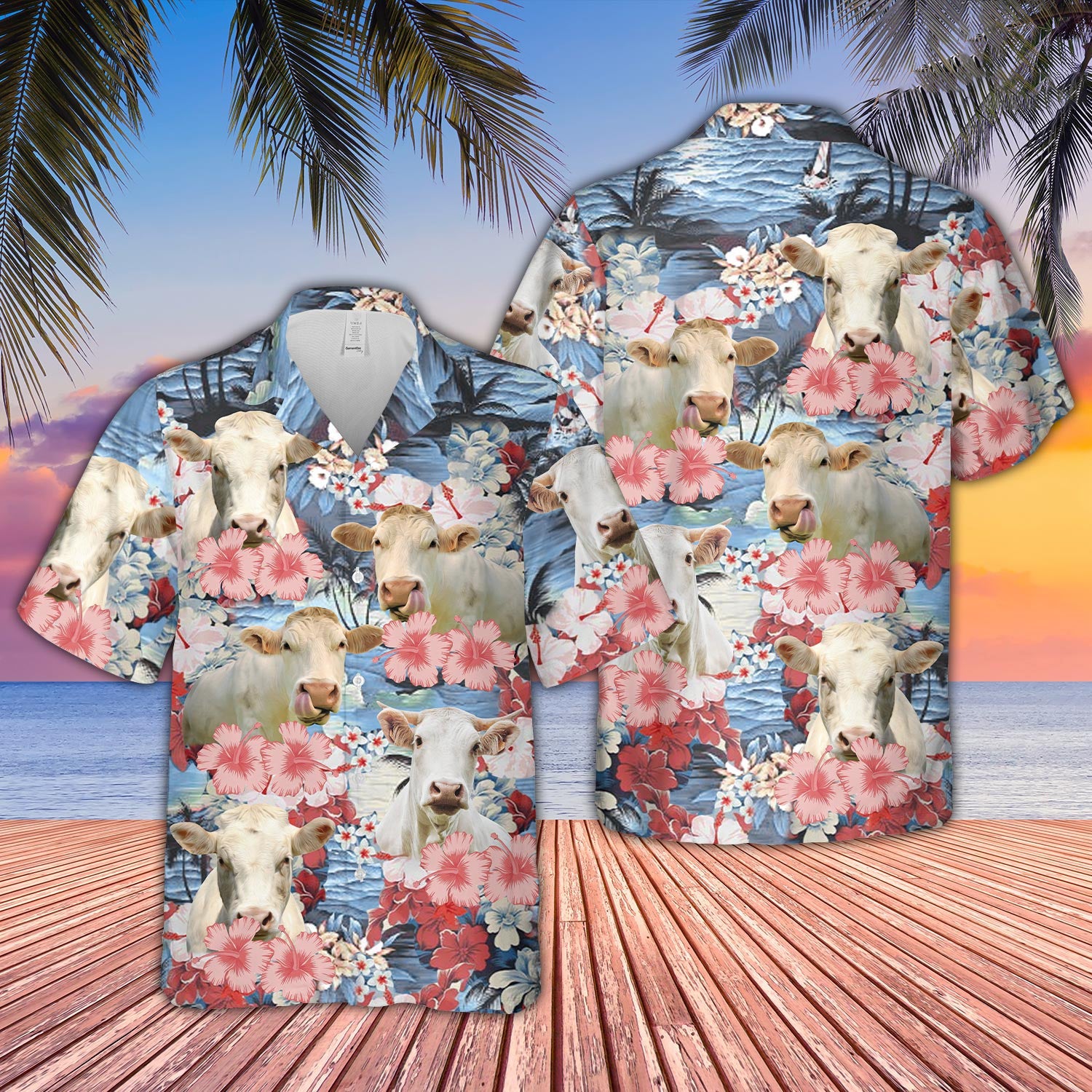Uni Charolais Flower Farming 3D Hawaiian Shirt