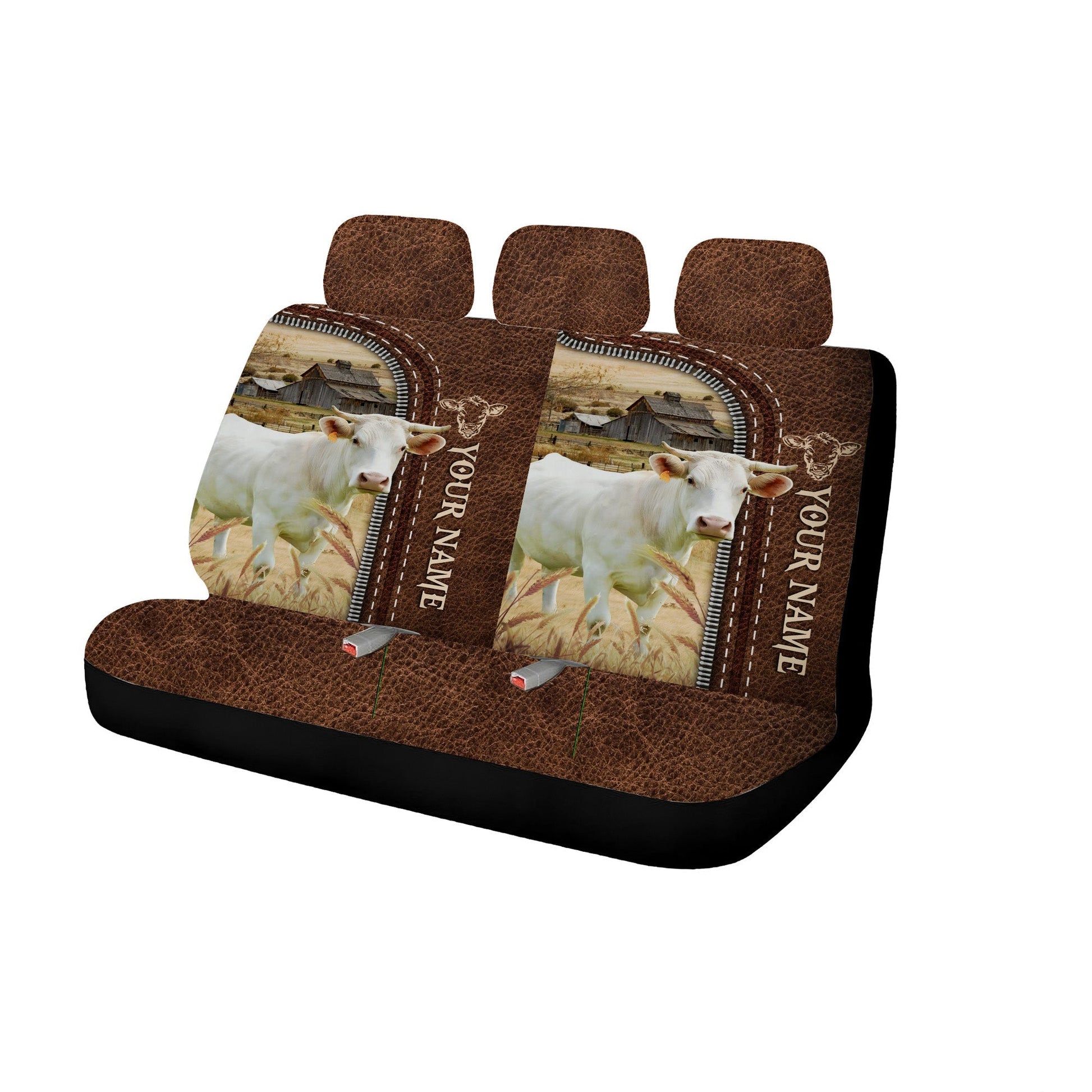 Uni Charolais Personalized Name Leather Pattern Car Seat Covers Universal Fit (2Pcs)