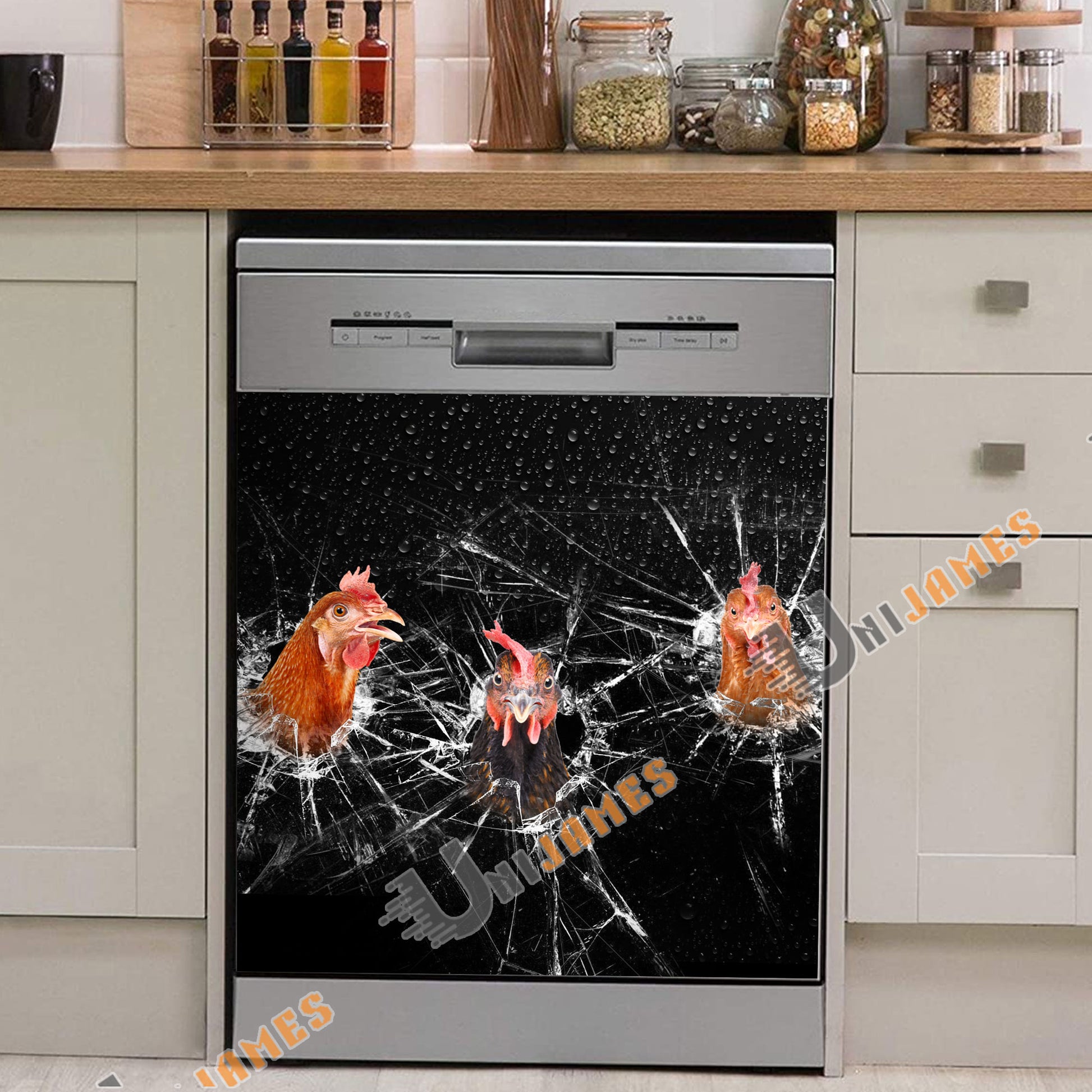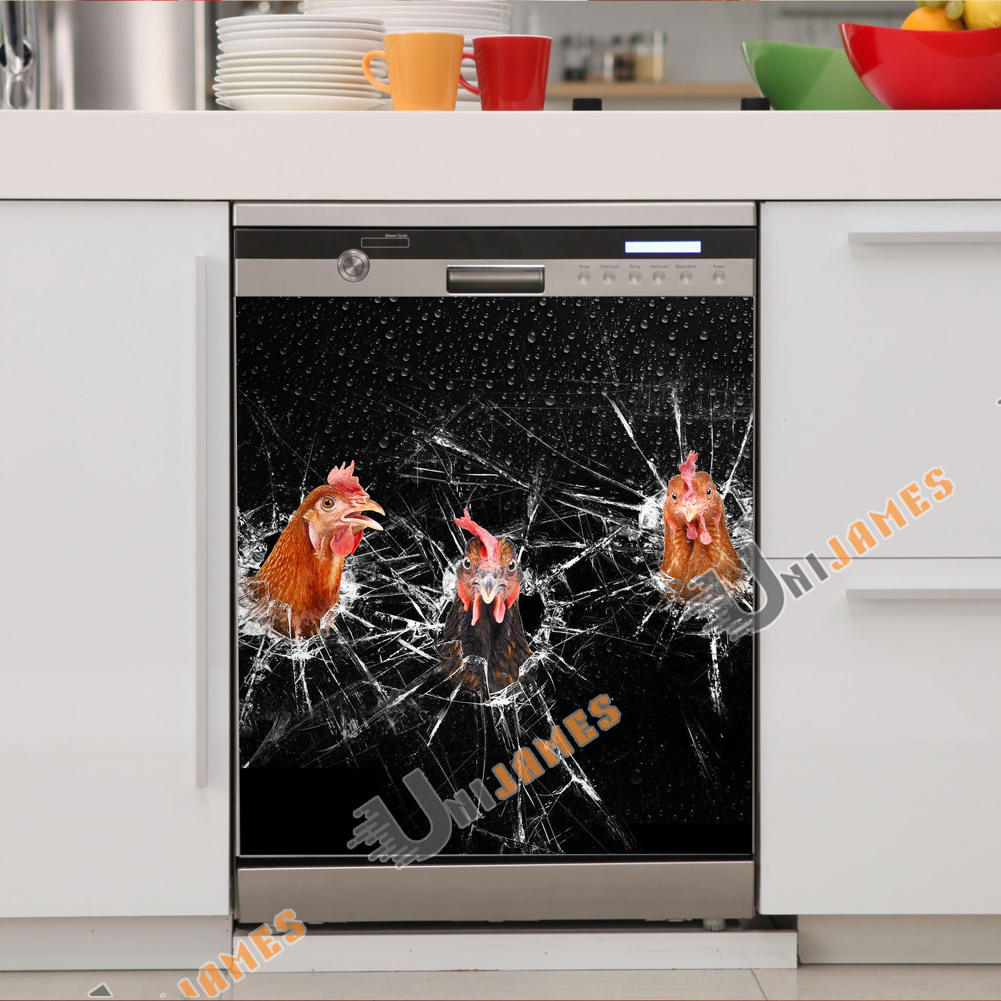 Uni Chicken Broken Glasses Dishwasher Door Cover