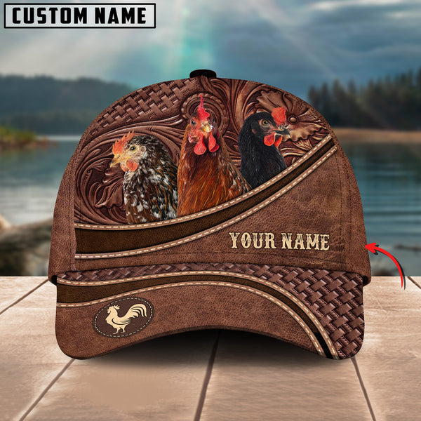 Uni Chicken Personalized Name Brown Carving Leather Pattern 3D Classic Cap