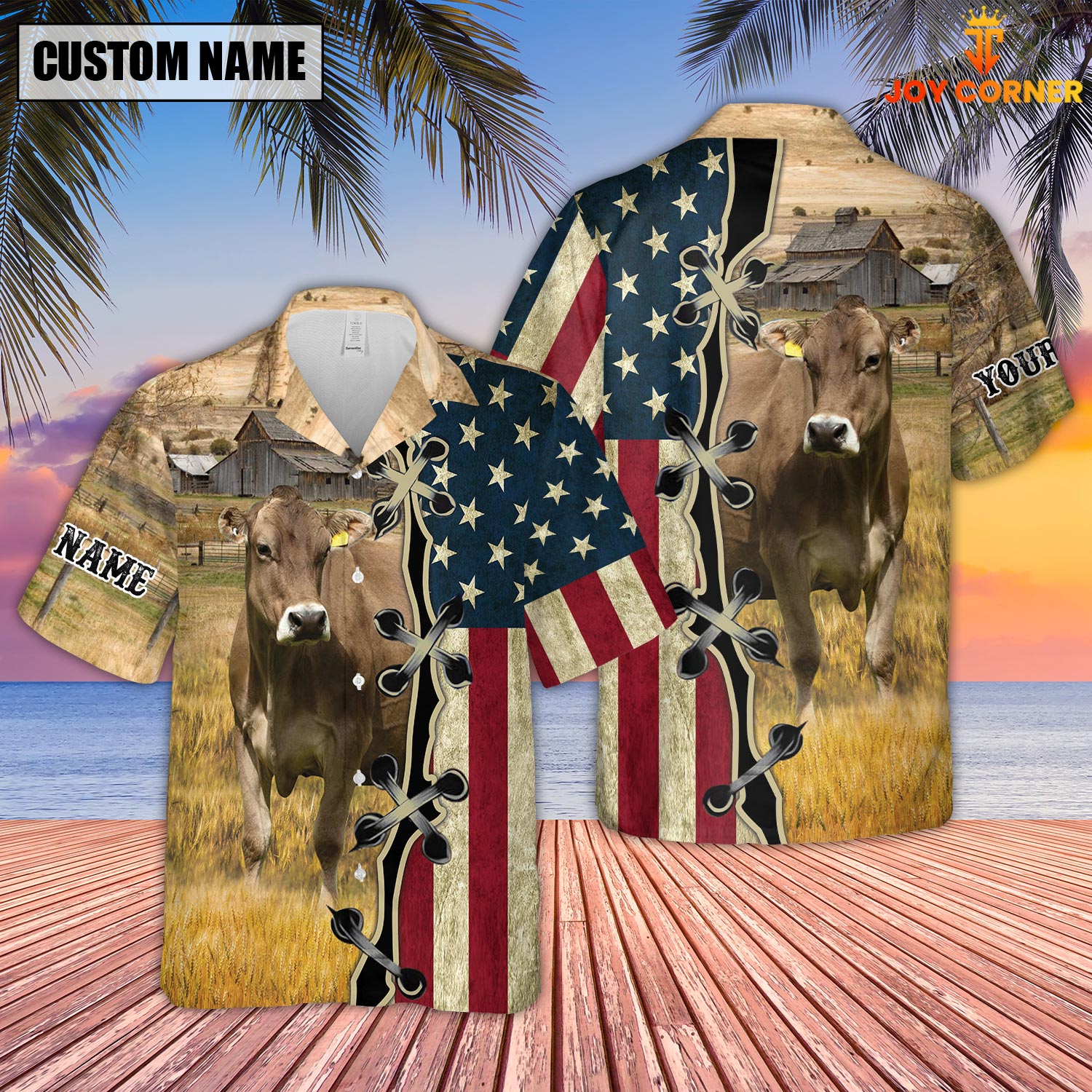 Uni Custom Name Brown Swiss Cattle American Flag 3D Shirt