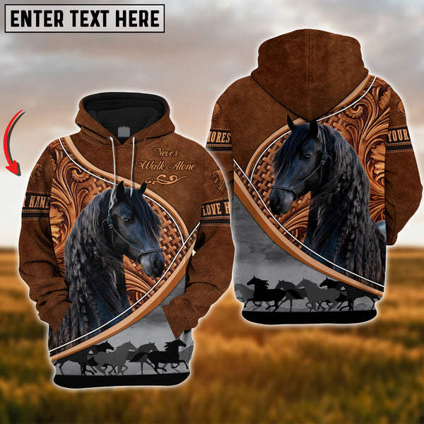Uni Custom Name Friesian Horse Never Walk Alone 3D Hoodie