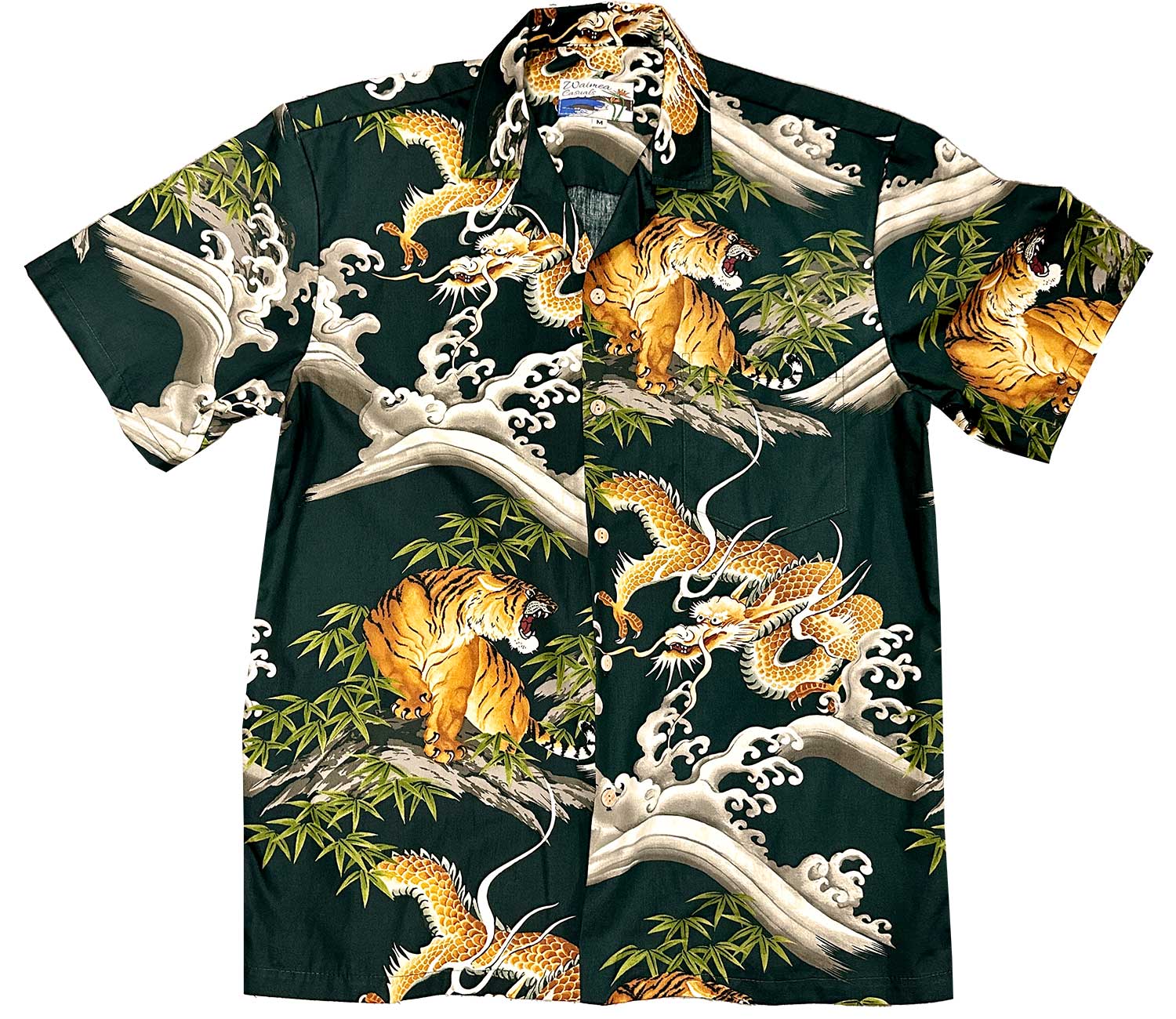 Uni Dragons & Tigers Black Hawaiian Shirt Aloha Shirt Short Sleeve Shirt Vacation Hawaiian Outdoor Vacation Hawaiian Shirtn Shirt