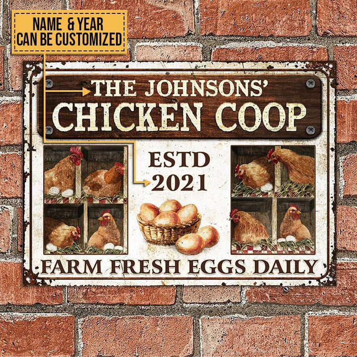 uni Farm Chicken Coop Fresh Eggs Daily Rectangle Metal Sign Custom Year And Name