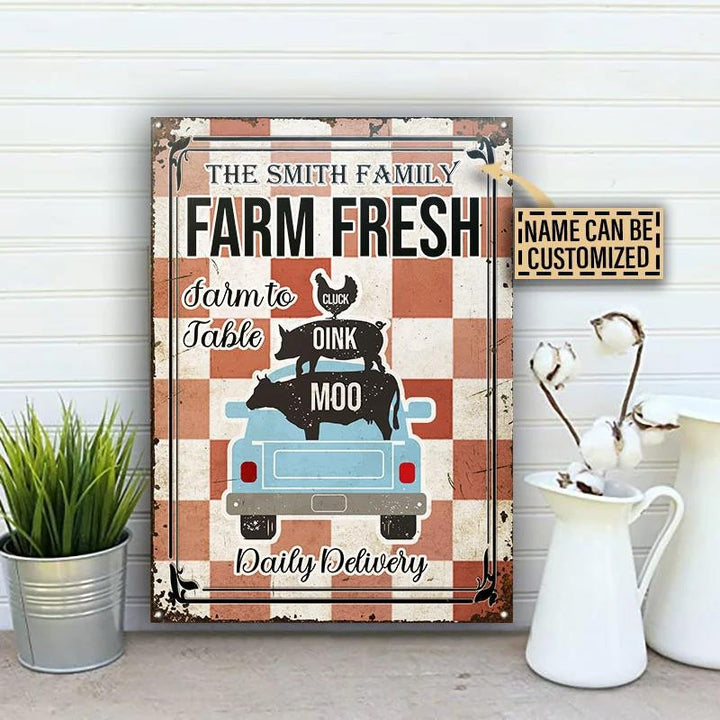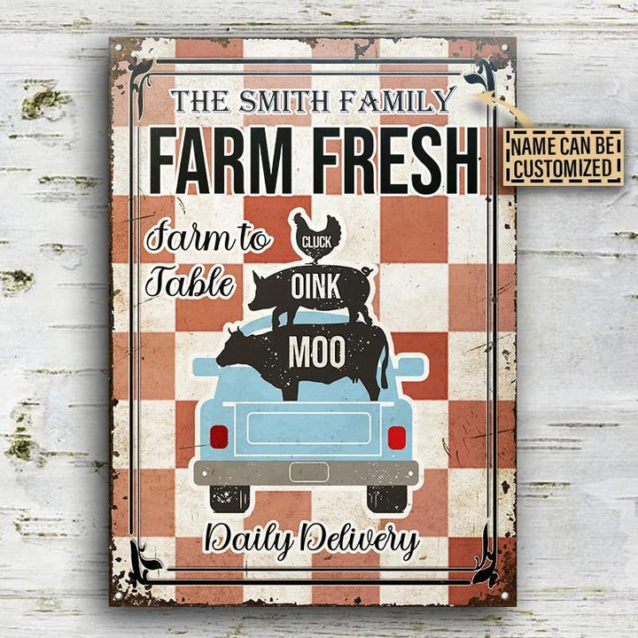 uni Farm Fresh Red And White Checked Pattern Rectangle Metal Sign Custom Name