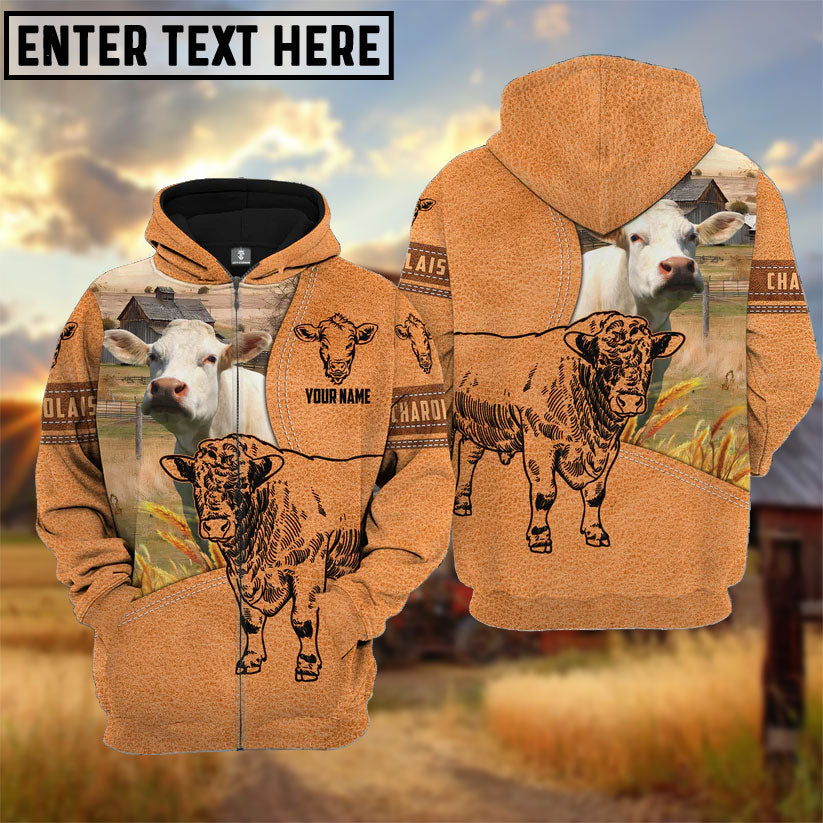 Uni Farm Personalized Name Charolais Light Brown Pattern 3D Hoodie