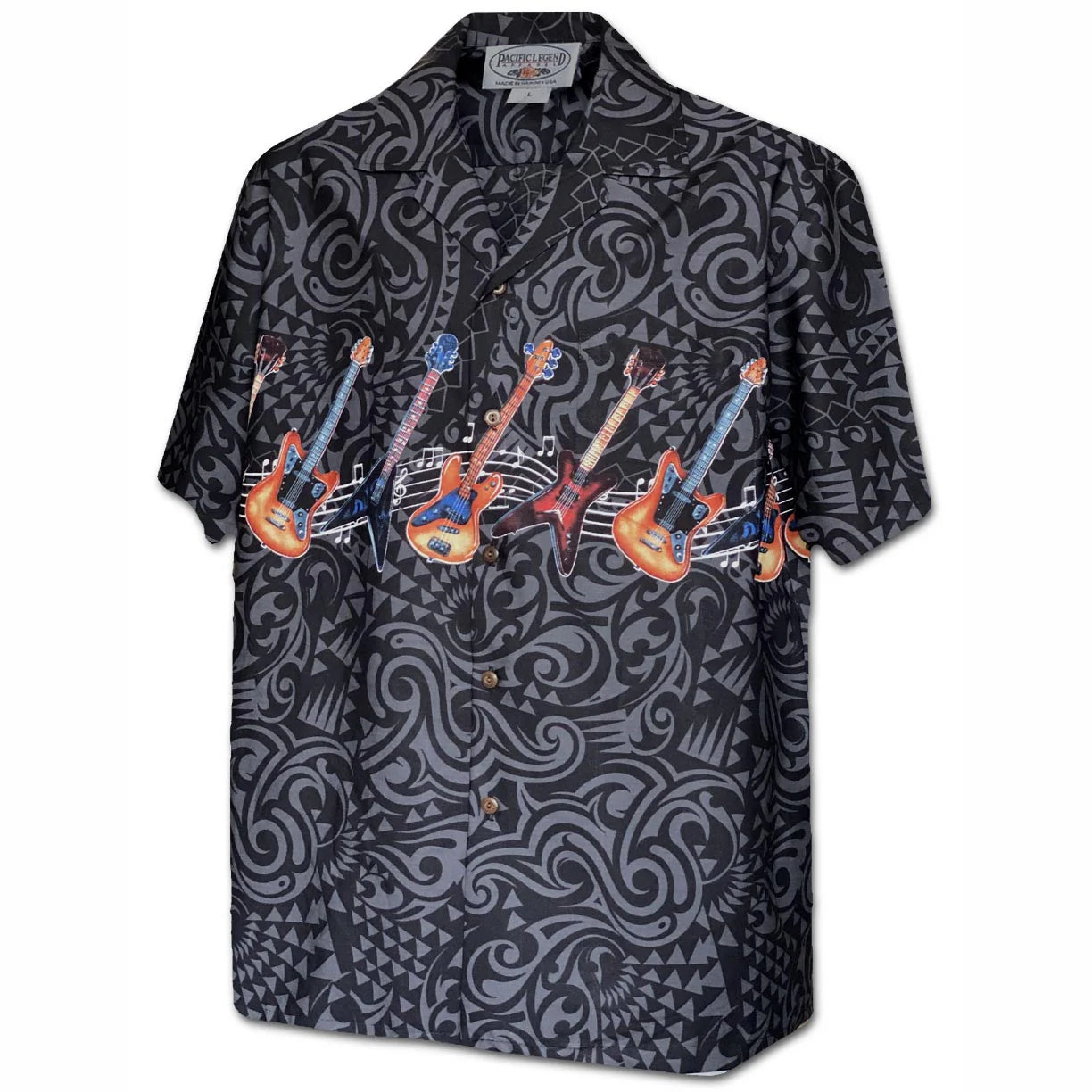 Uni Guitar Rock Black Hawaiian Shirt Aloha Shirt Short Sleeve Shirt Vacation Hawaiian Outdoor Vacation Hawaiian Shirt