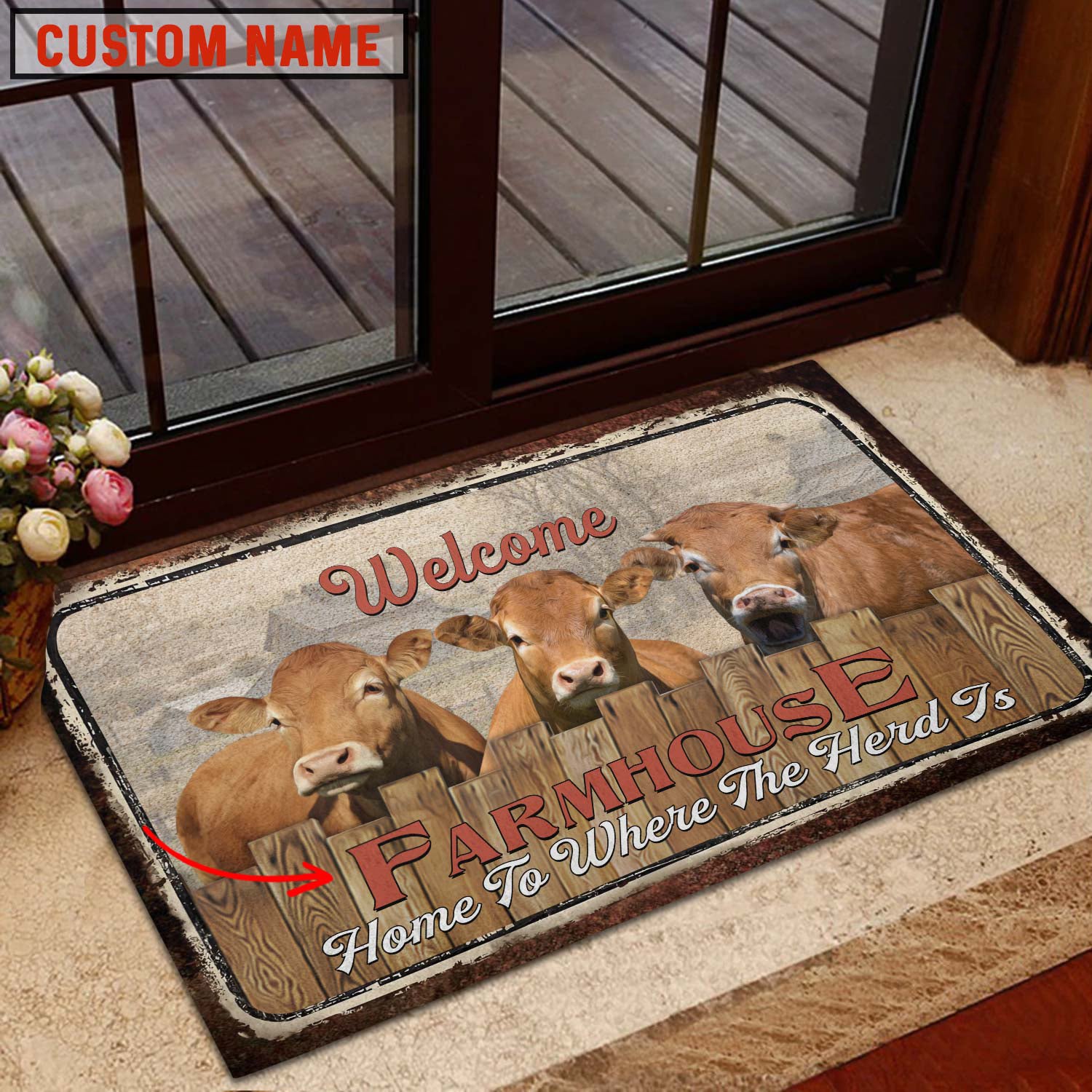 Uni Fleckvieh Custom Name - Home To Where The Herd Is FarmHouse Doormat