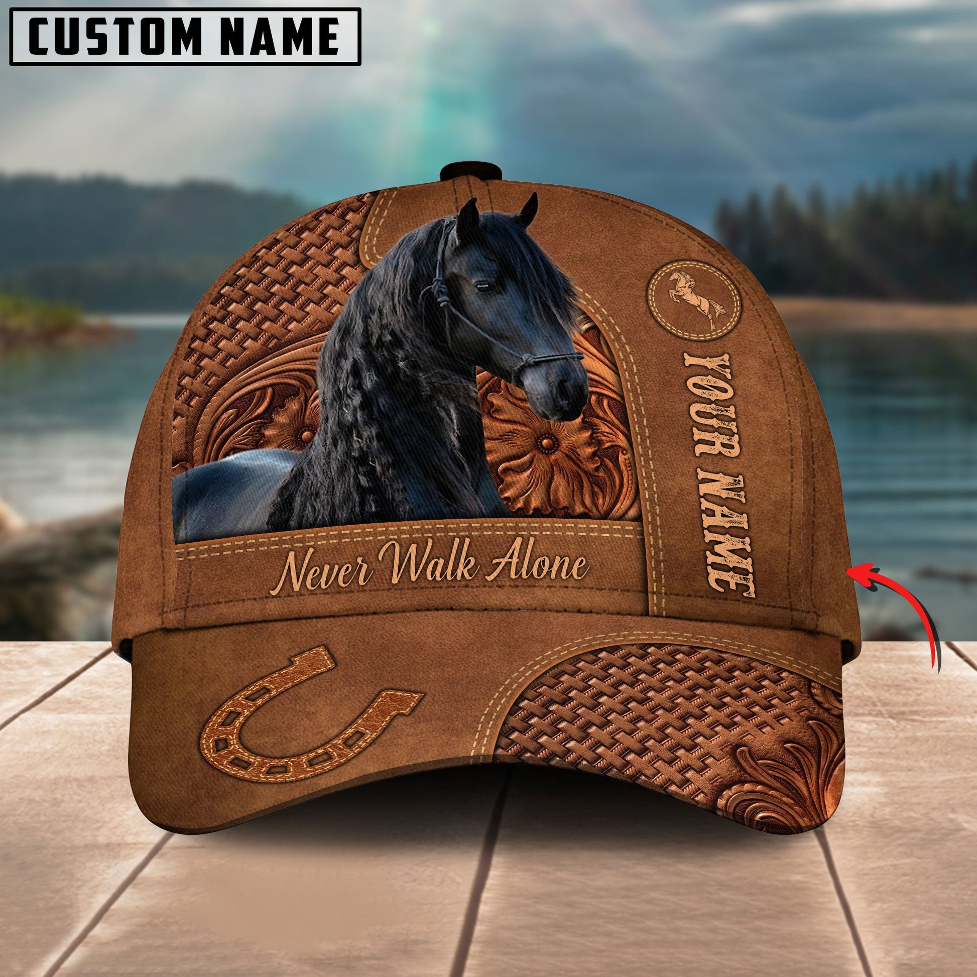 Uni Friesian Horse Carving Leather Pattern Custom Name 3D Classic Cap