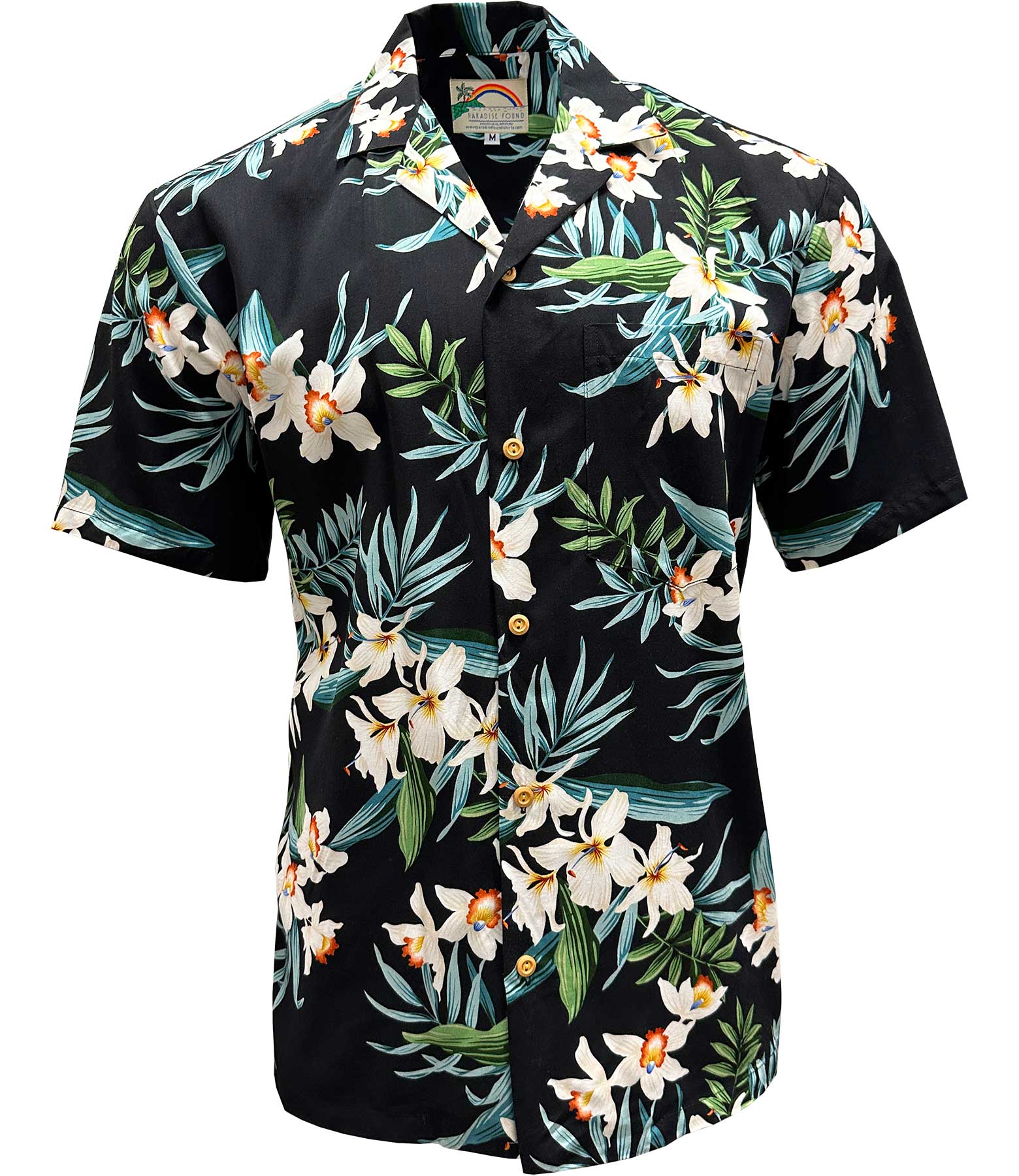 Uni Ginger Orchid Black Hawaiian Shirt Aloha Shirt Short Sleeve Shirt Vacation Hawaiian Outdoor Vacation Hawaiian Shirt