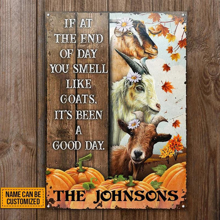 uni Goat Farm Autumn Barn Pumpkin Pattern Rectangle Metal Sign Custom Name
