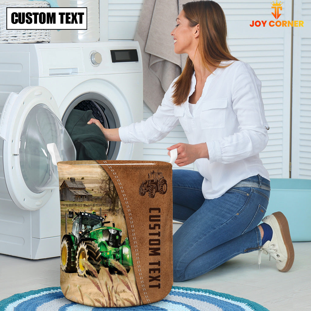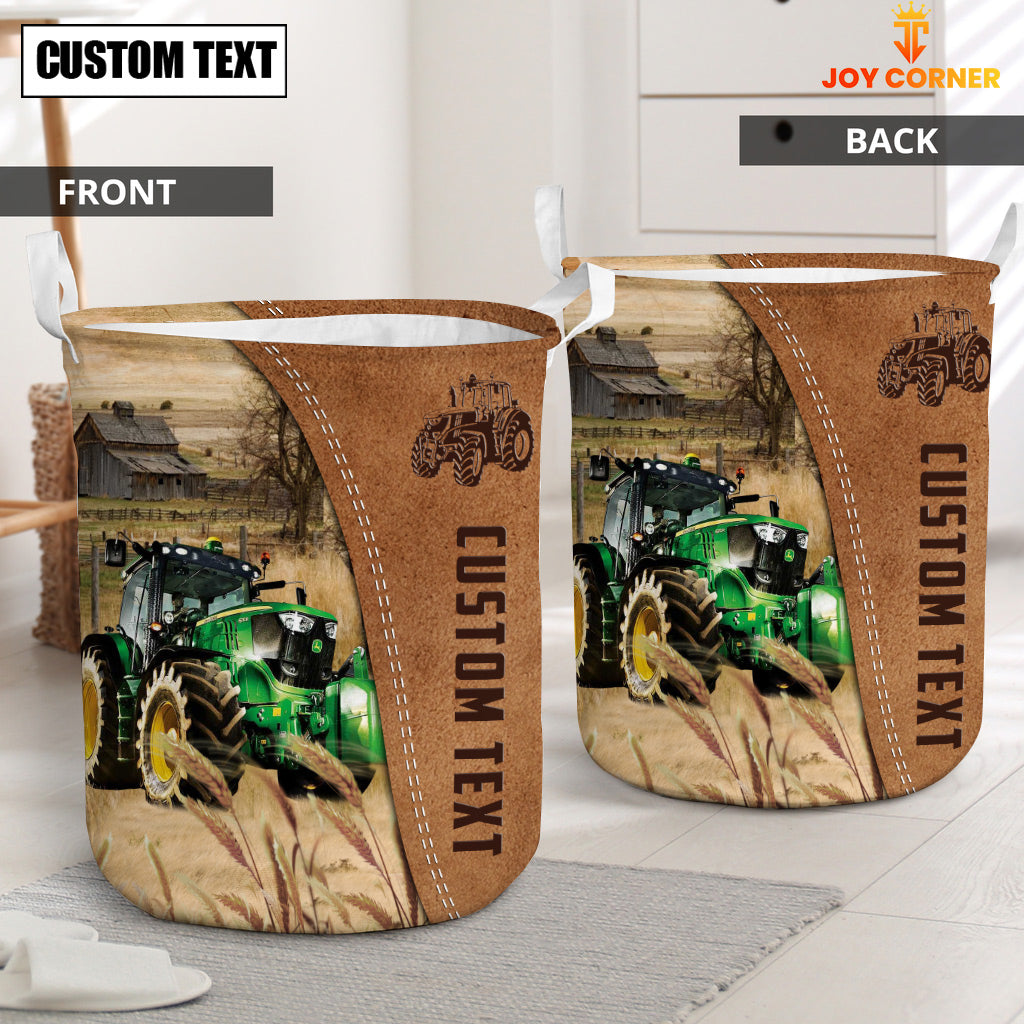 Uni Green Tractor Brown Farm Custom Name Laundry Basket
