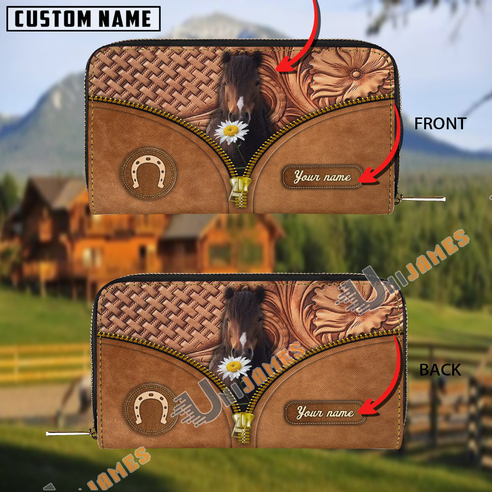 Uni Hackney Center Zip Pattern Custom Name 3D Leather Clutch