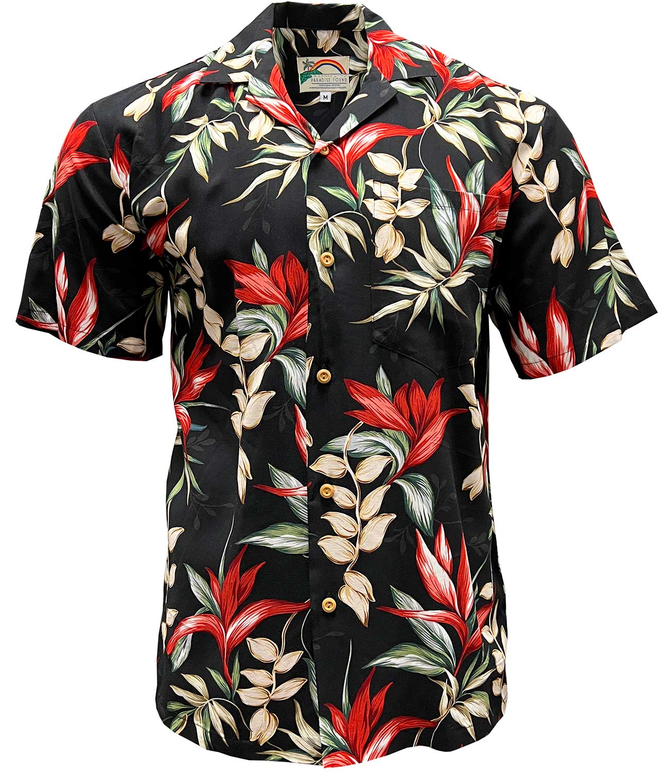 Uni Heliconia and Paradise Black Aloha Shirt Short Sleeve Shirt Vacation Hawaiian Outdoor Vacation