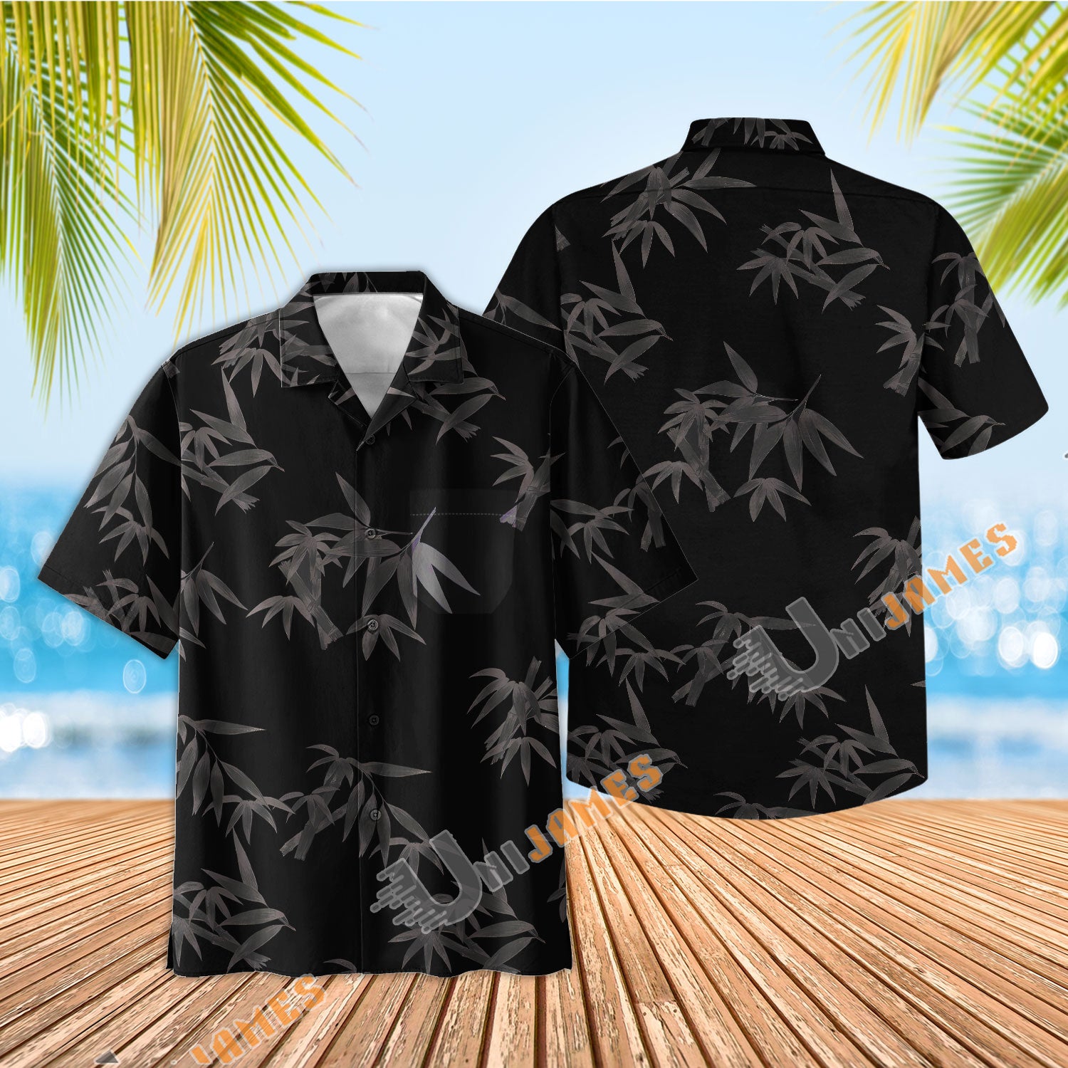 Uni Bamboo Garden Black Hawaiian Shirt Aloha Shirt Short Sleeve Shirt Vacation Hawaiian Outdoor Vacation Hawaiian Shirt
