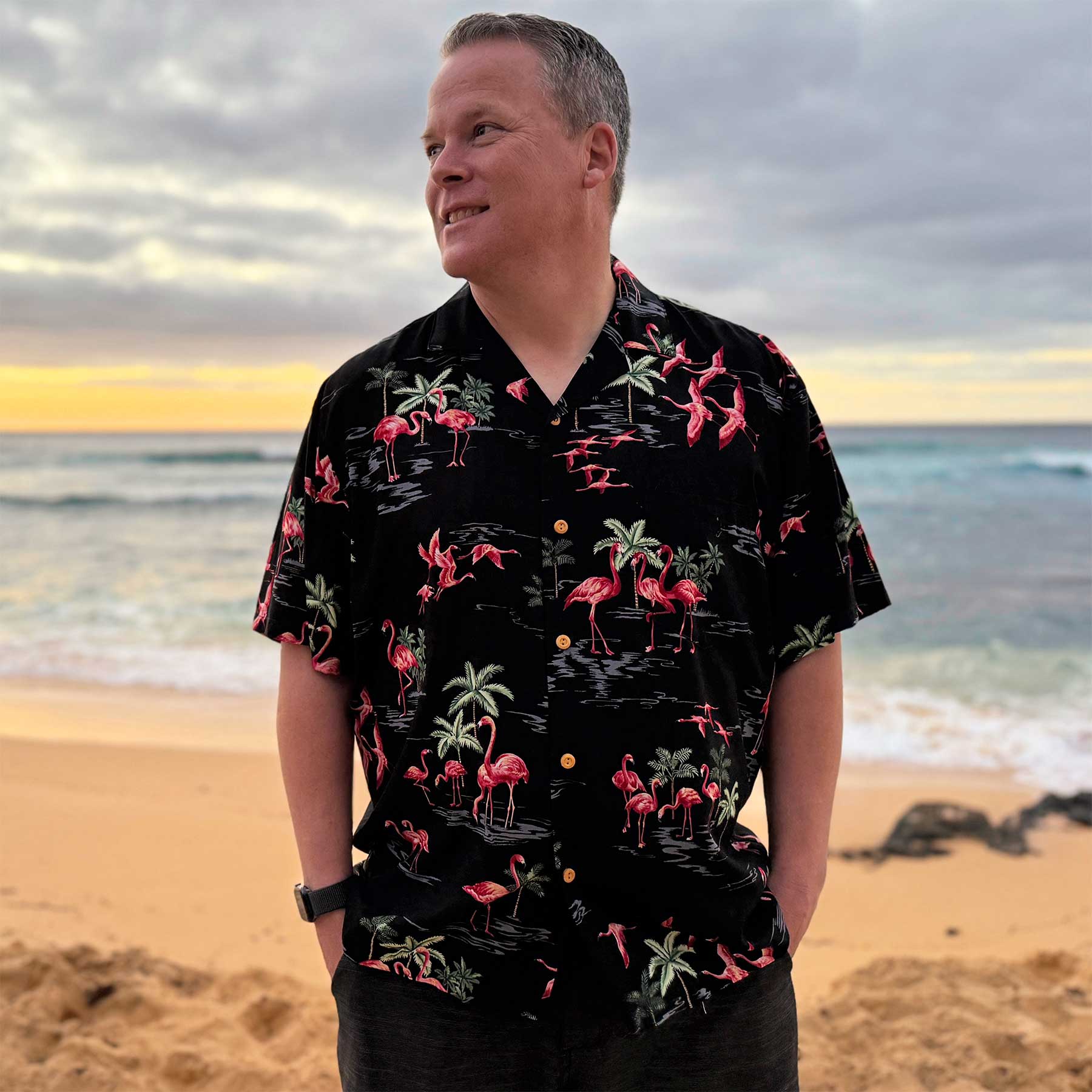 Uni Fine Flamingos Midnight Hawaiian Shirt Aloha Shirt Short Sleeve Shirt Vacation Hawaiian Outdoor Vacation Hawaiian Shirt