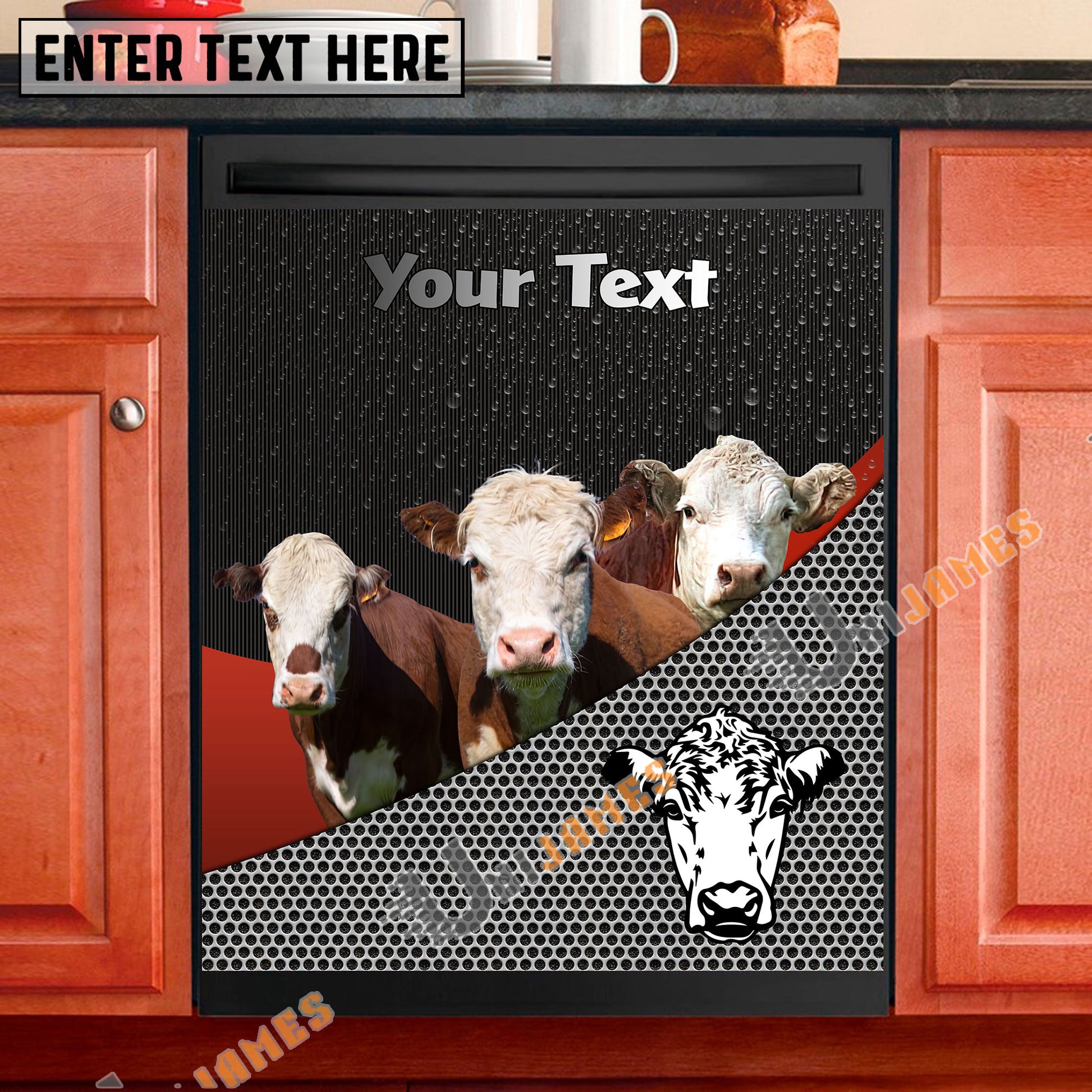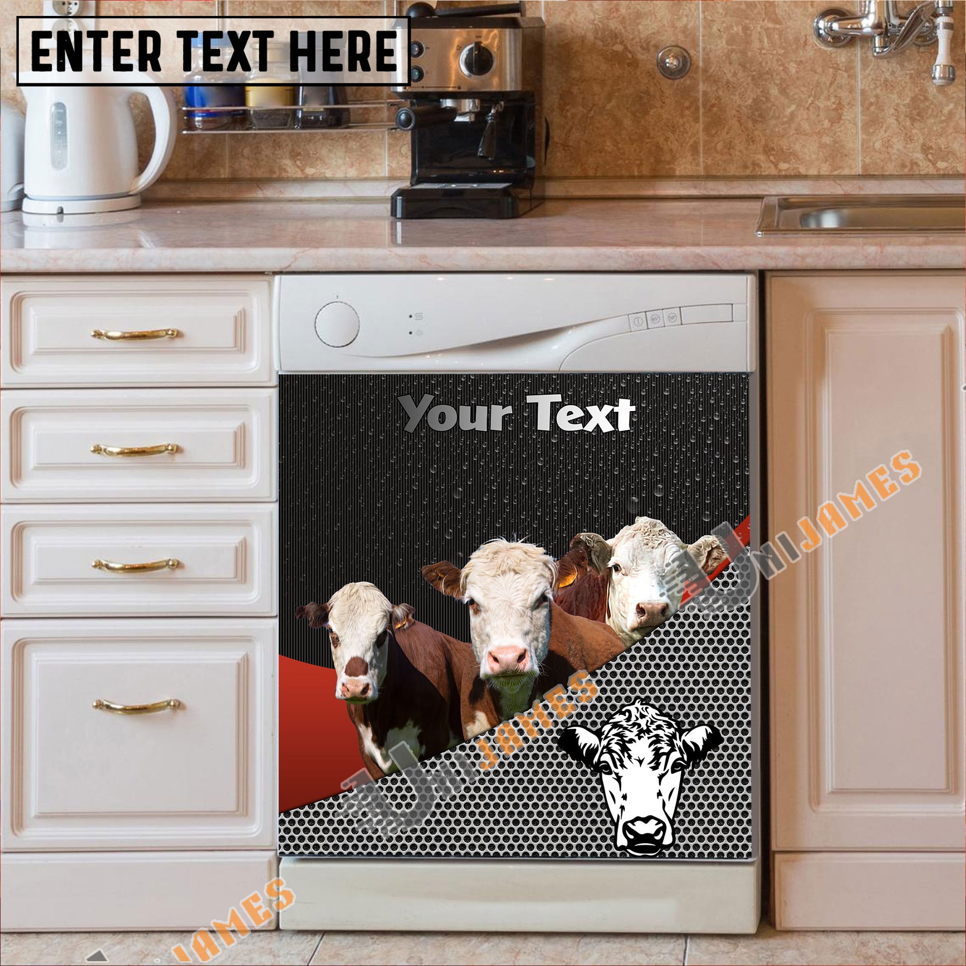 Uni Hereford Cattle Metal Pattern Custom Name Dishwasher Door Cover