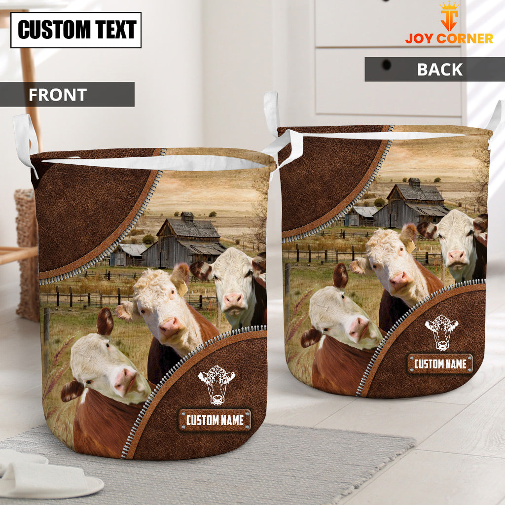 Uni Hereford Cow Custom Name Laundry Basket