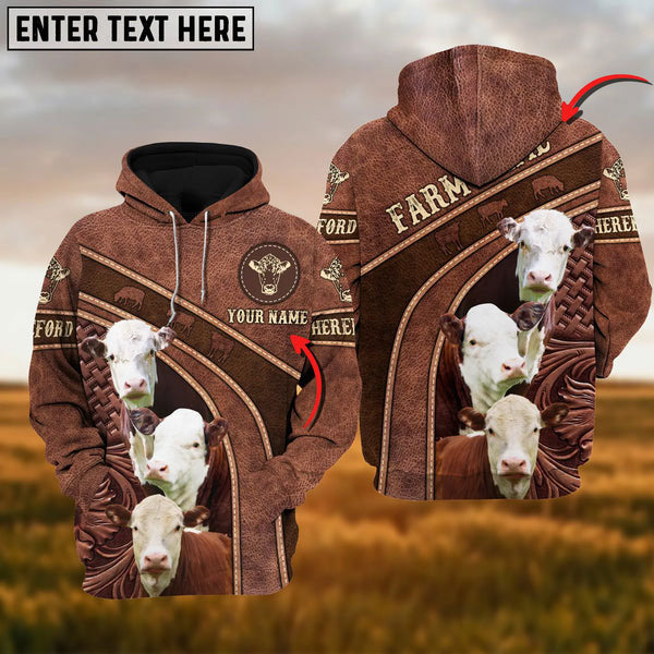 Uni Hereford Personalized Name Brown Carving Leather Pattern 3D Hoodie