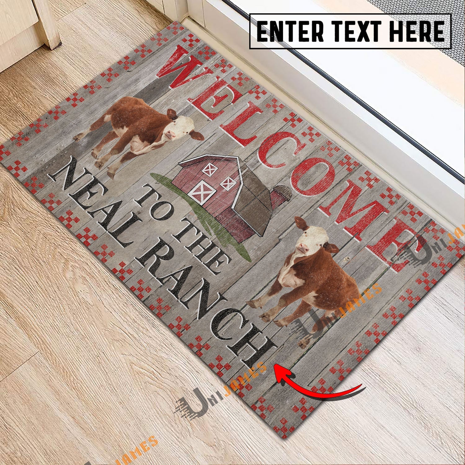 Uni Hereford Welcome To The Farmhouse Custom Name Doormat