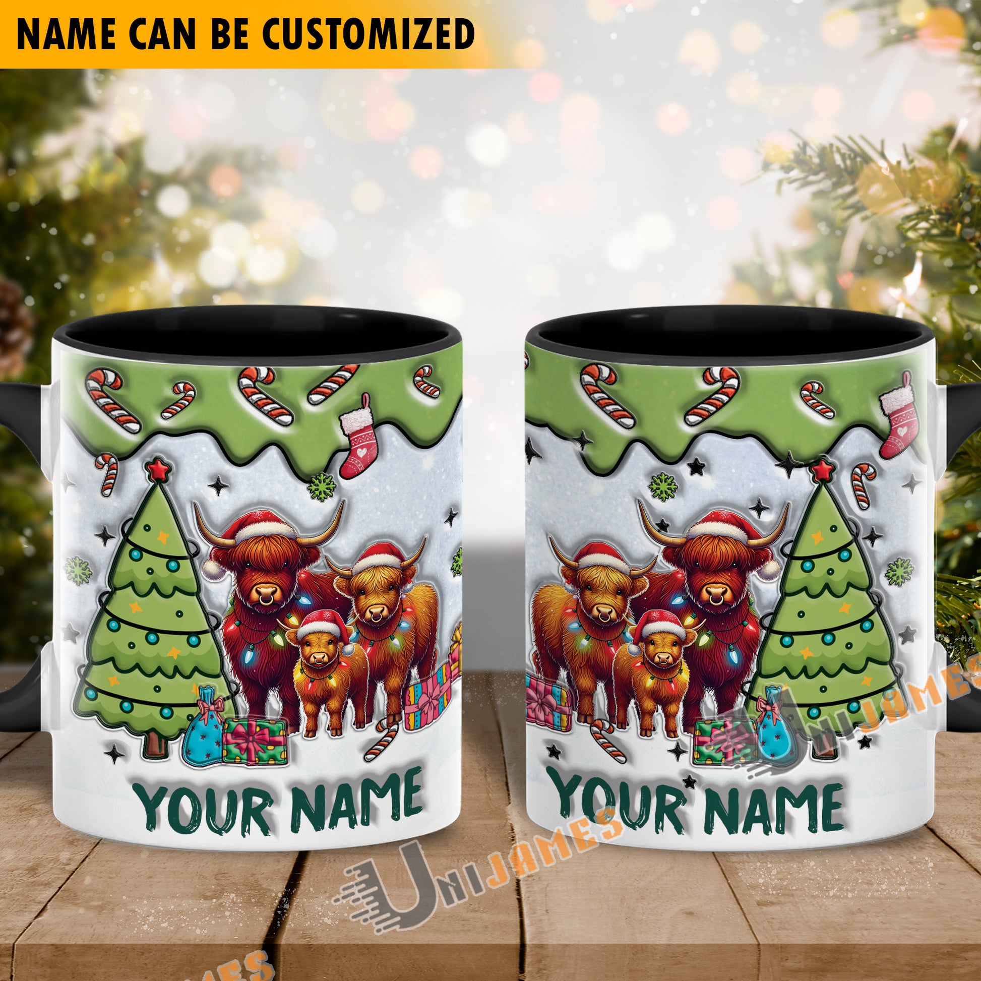 Uni Highland Cattle Christmas Personalized Name Two Tone Mug
