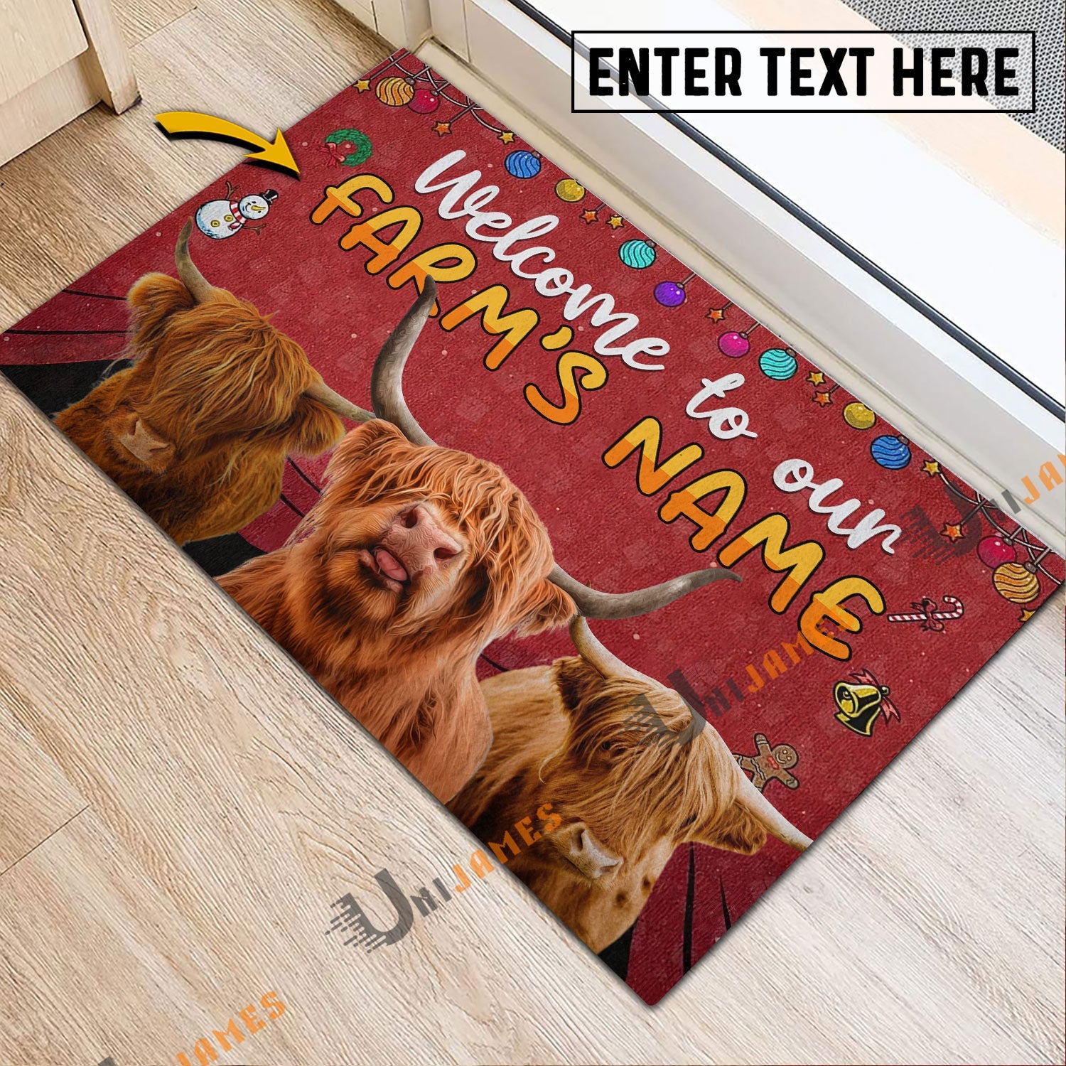Uni Highland Christmas Custom Name Doormat