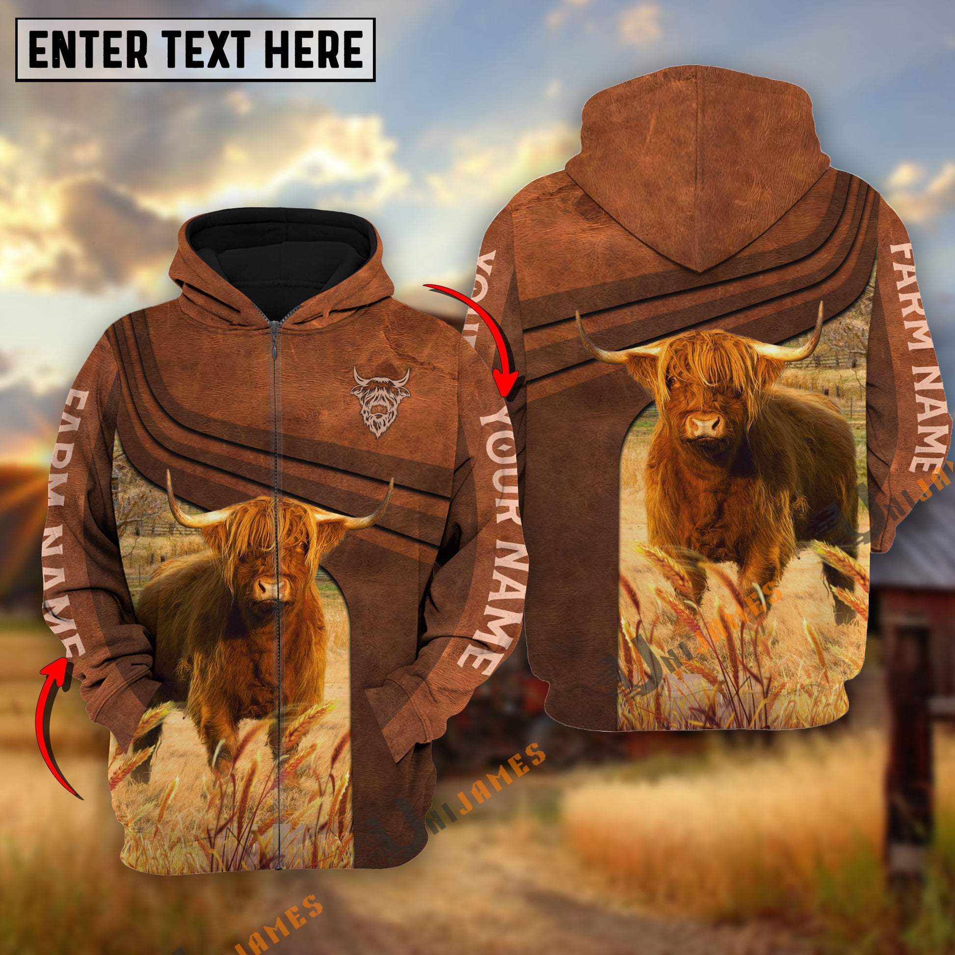 Uni Highland Cross Line Personalized Name, Farm Name 3D Hoodie