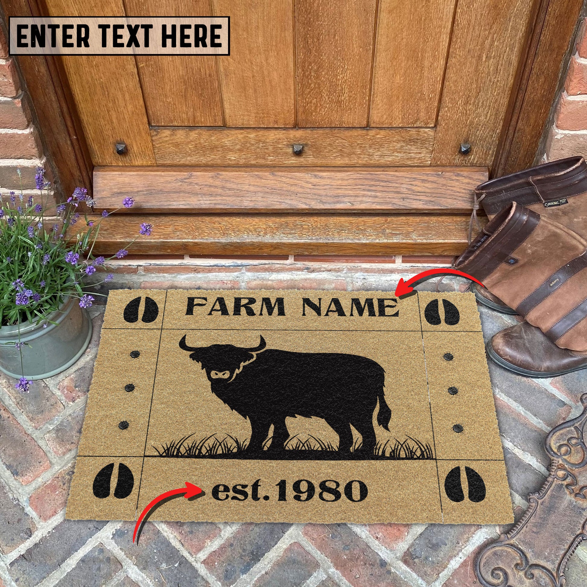 Uni Highland Hoove Custom Farm Name Custom Year Coir Doormat