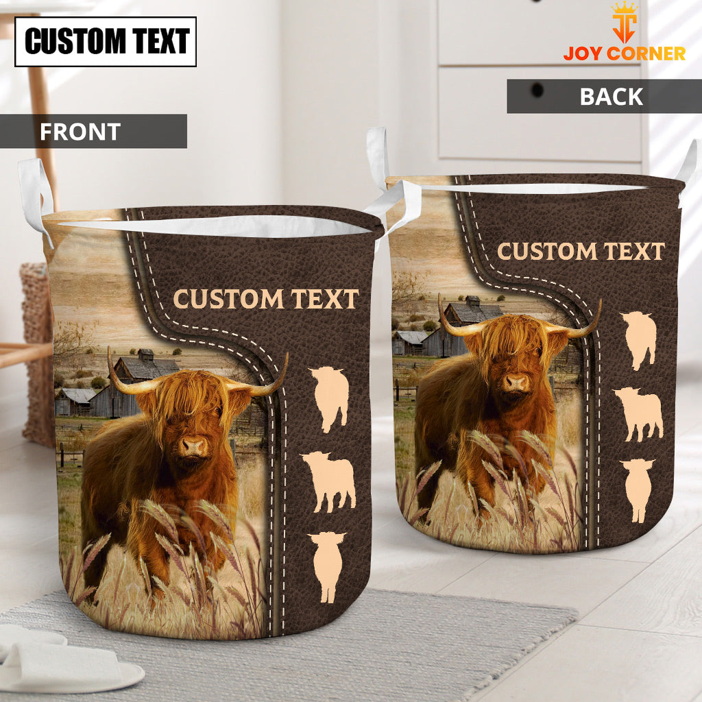 Uni Highland Custom Name Leather Pattern Laundry Basket