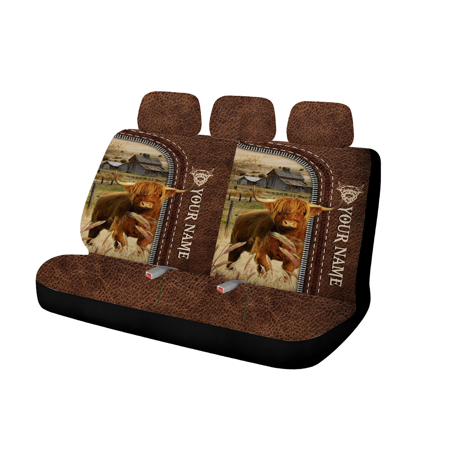 Uni Highland Personalized Name Leather Pattern Car Seat Covers Universal Fit (2Pcs)