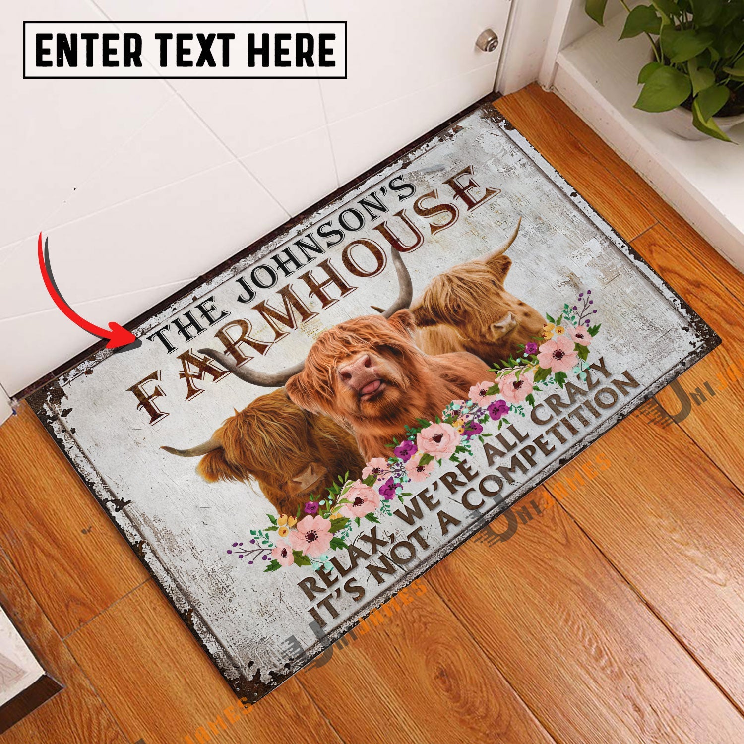 Uni Highland Relax Cattle Farm Personalized Name Doormat