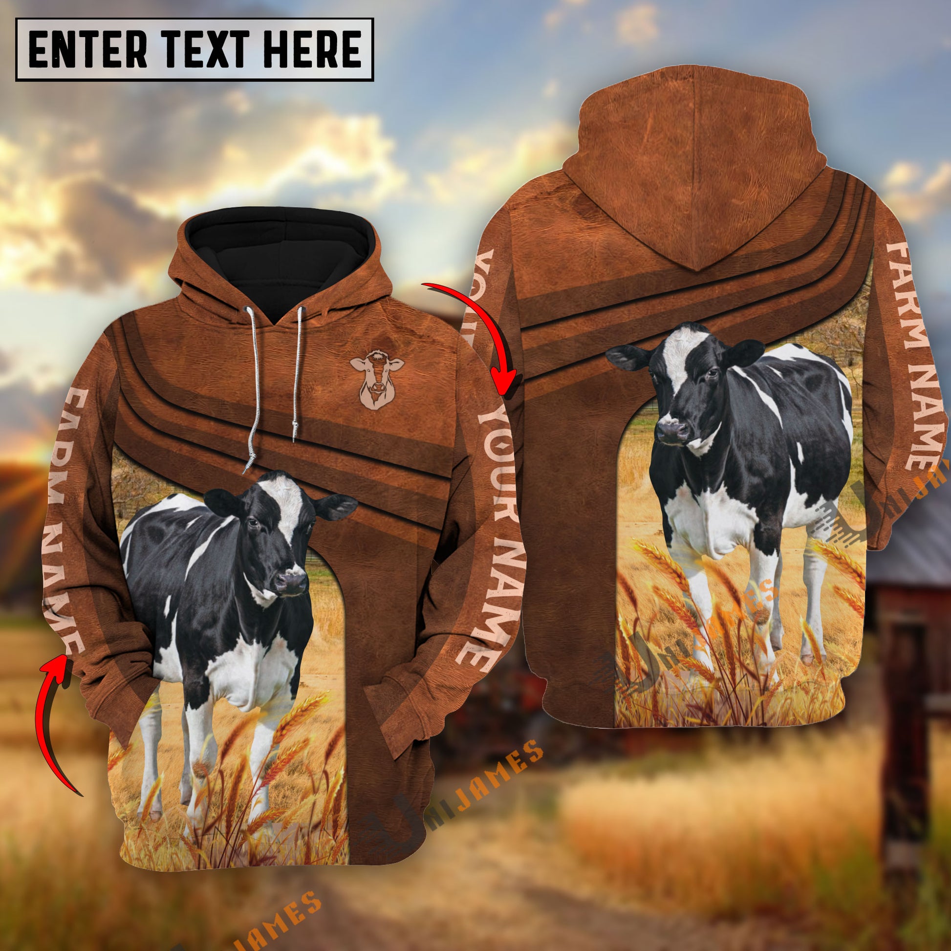 Uni Holstein Cross Line Personalized Name, Farm Name 3D Hoodie