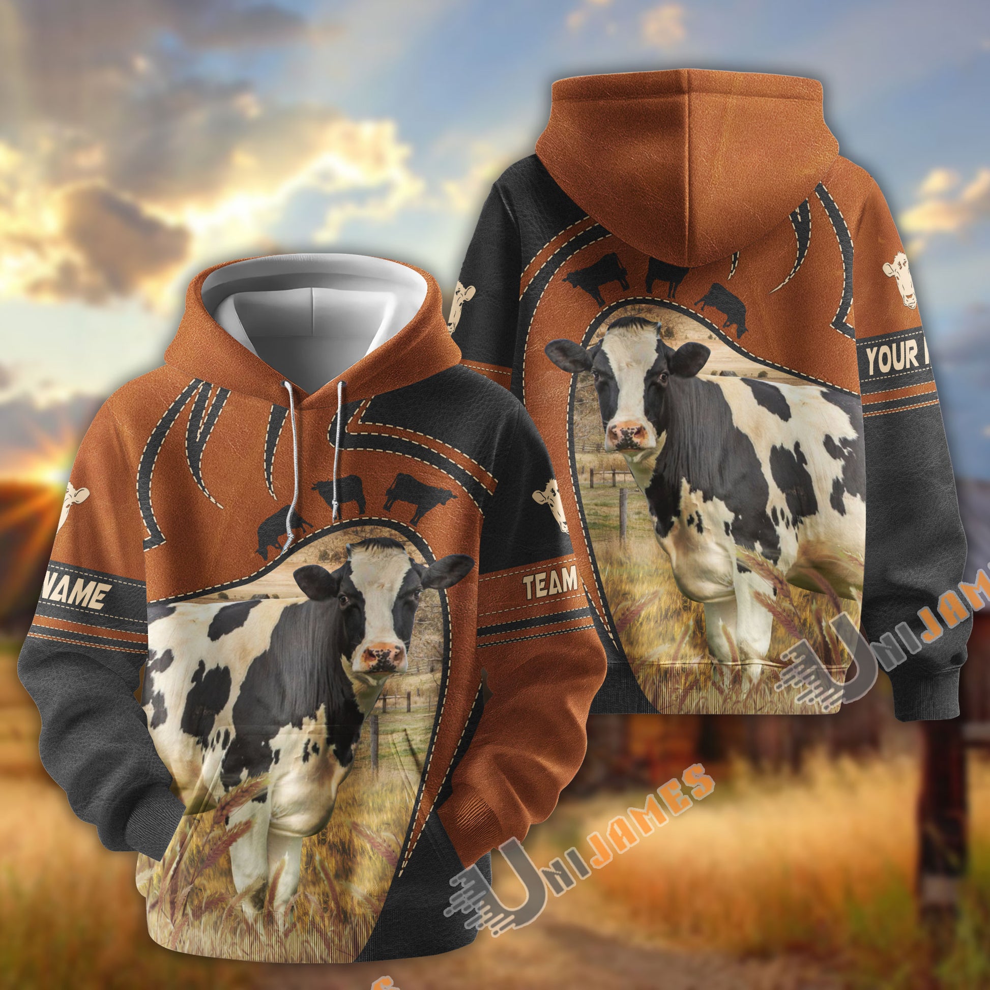 Uni Holstein Leather Pattern Custom Name, Farm Name 3D Hoodie