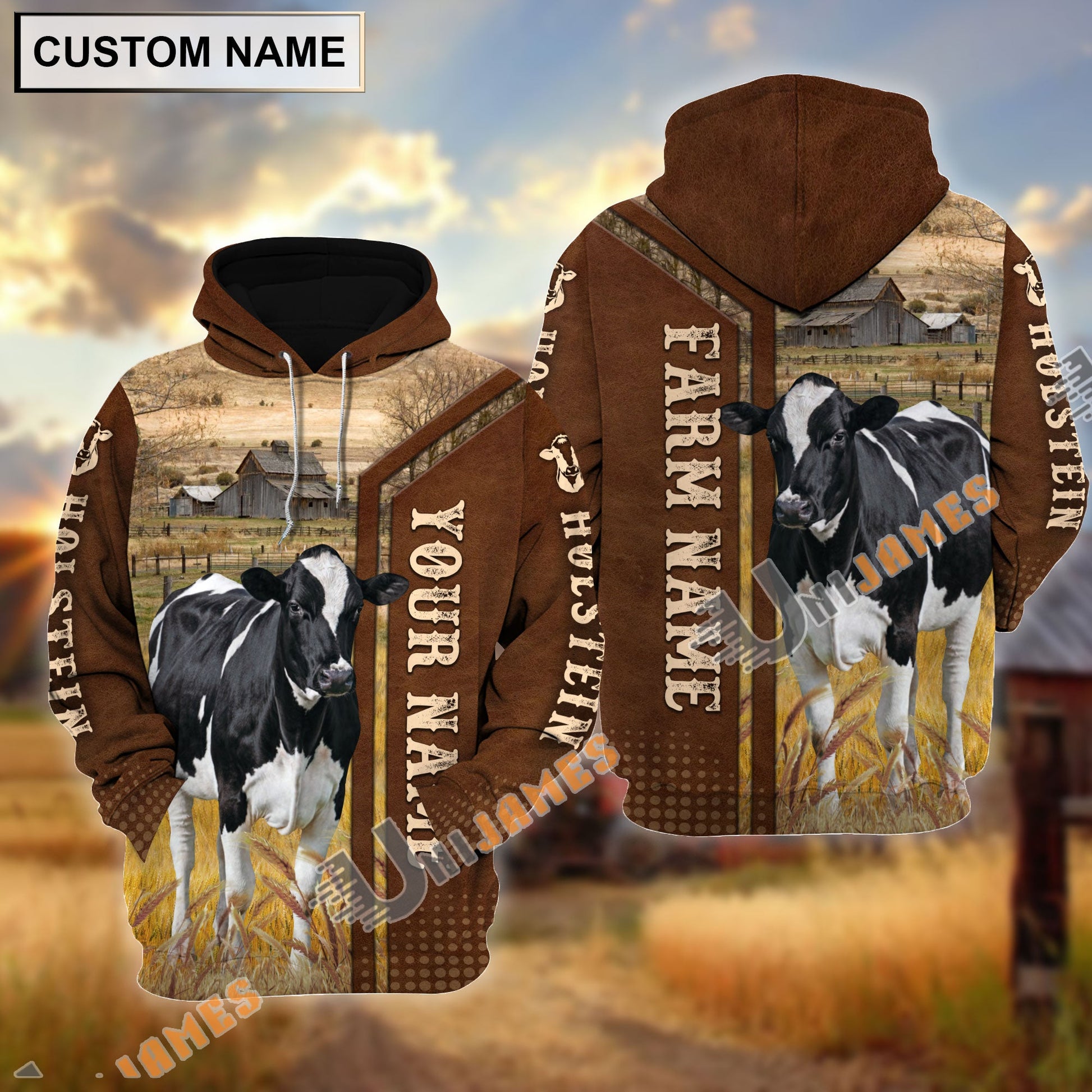 Uni Holstein Personalized Name, Farm Name 3D Hoodie
