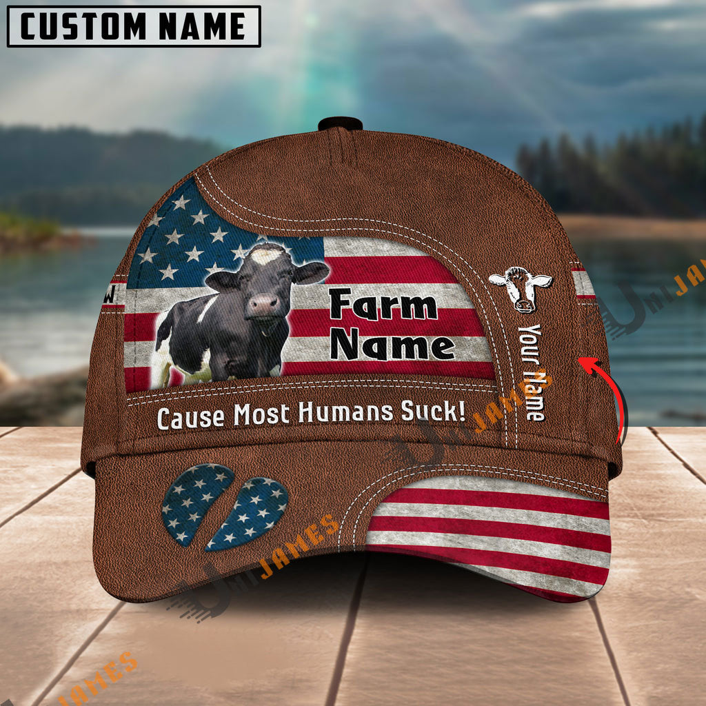Uni Holstein US Flag Customized Name And Farm Name Cap