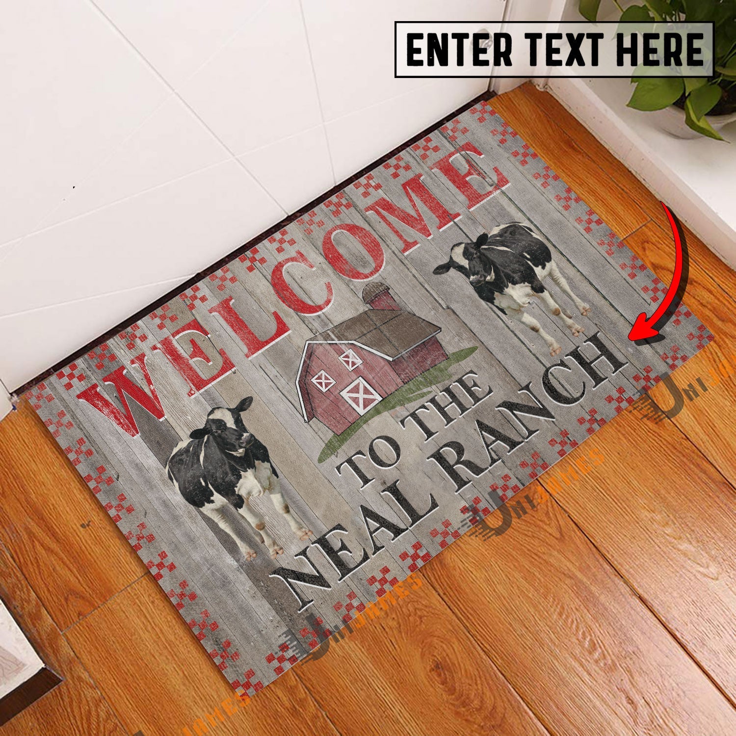 Uni Holstein Welcome To The Farmhouse Custom Name Doormat