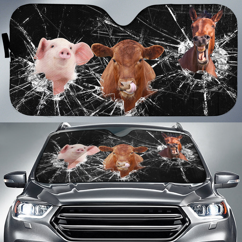 Uni Horse, Angus & Pig Broken Glasses 3D Sun Shade