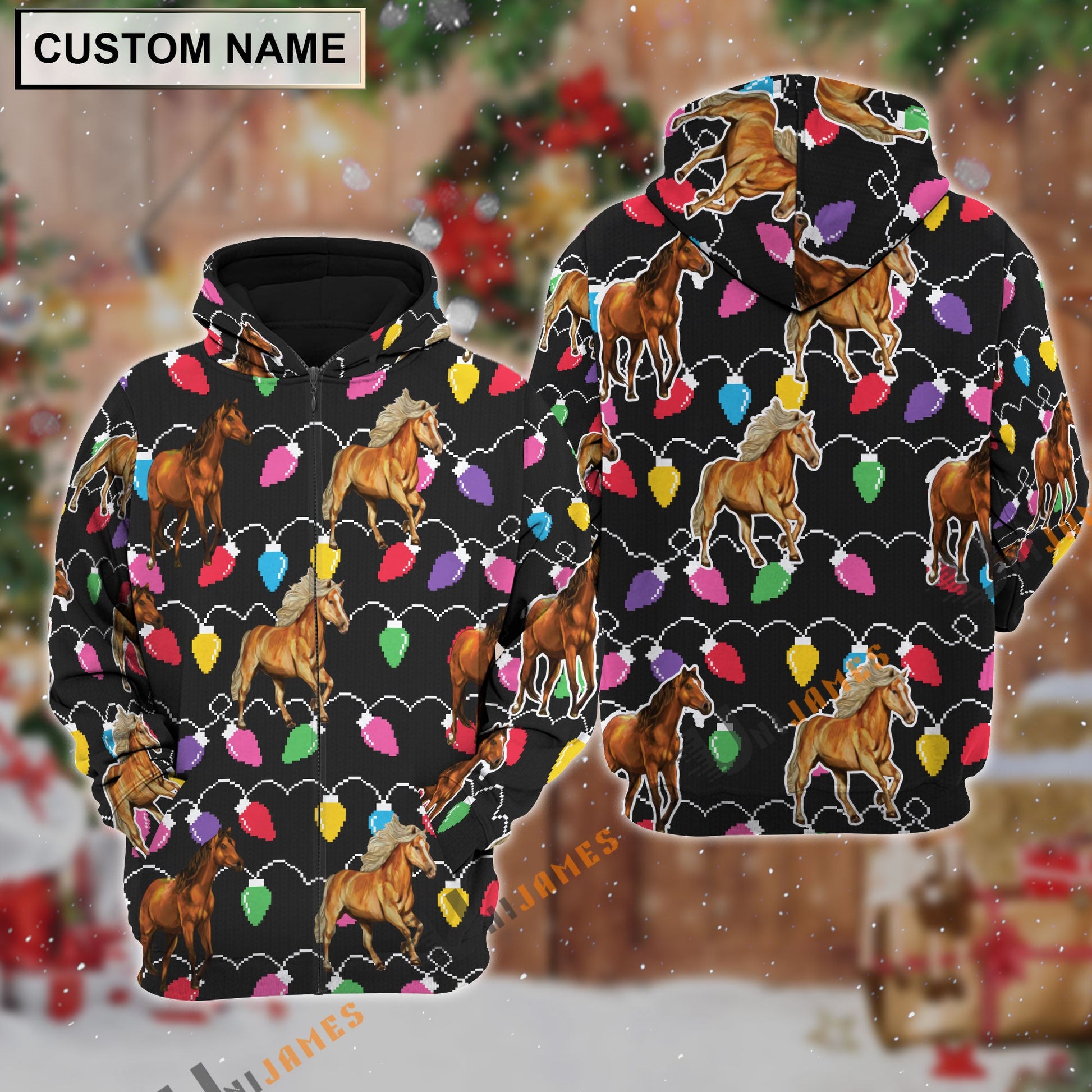 Uni Horse Christmas Led Light Personalized Name 3D Hoodie